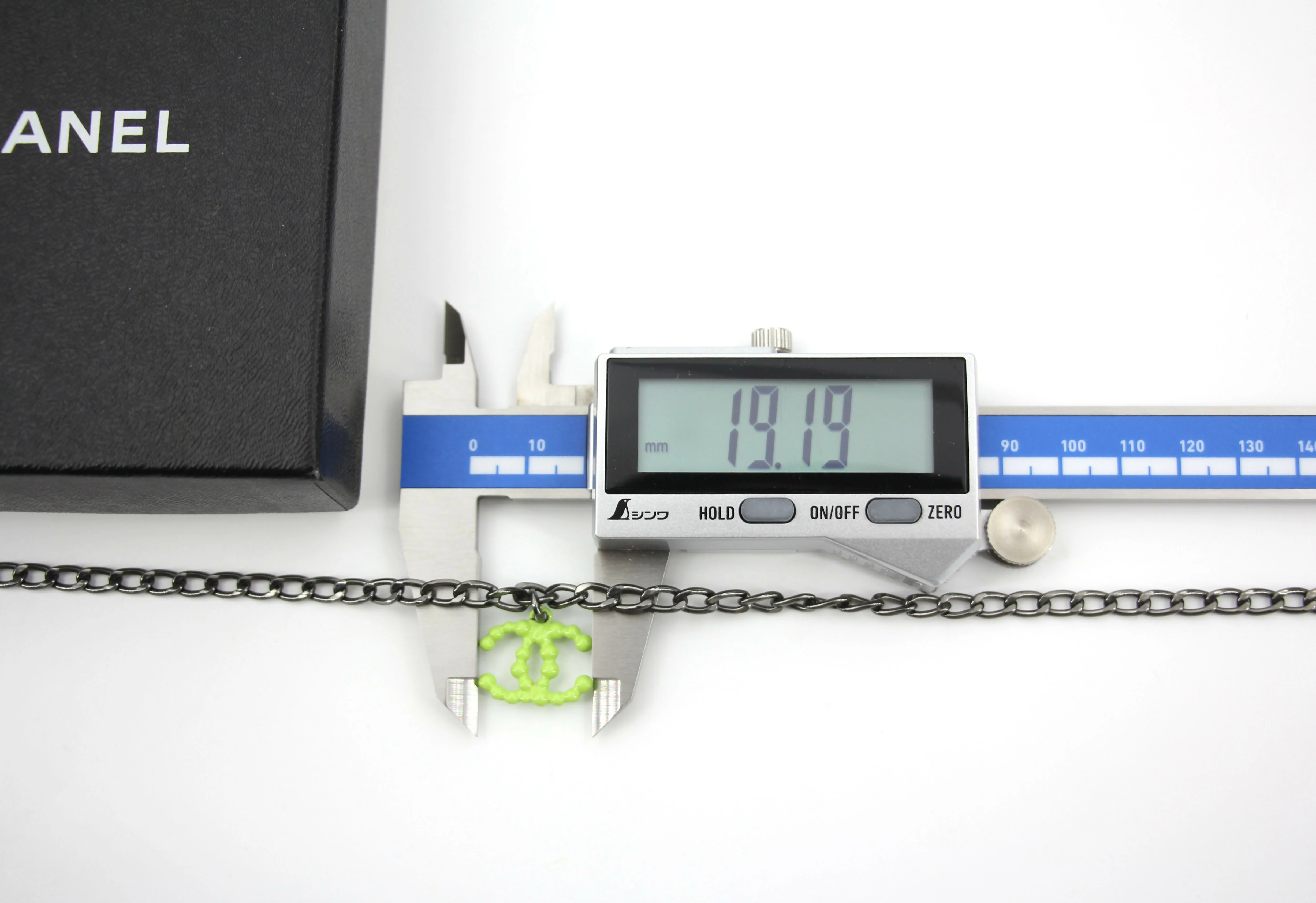 Chanel Vintage 04A Resin Fluorescent Green CC Grey Chain Necklace