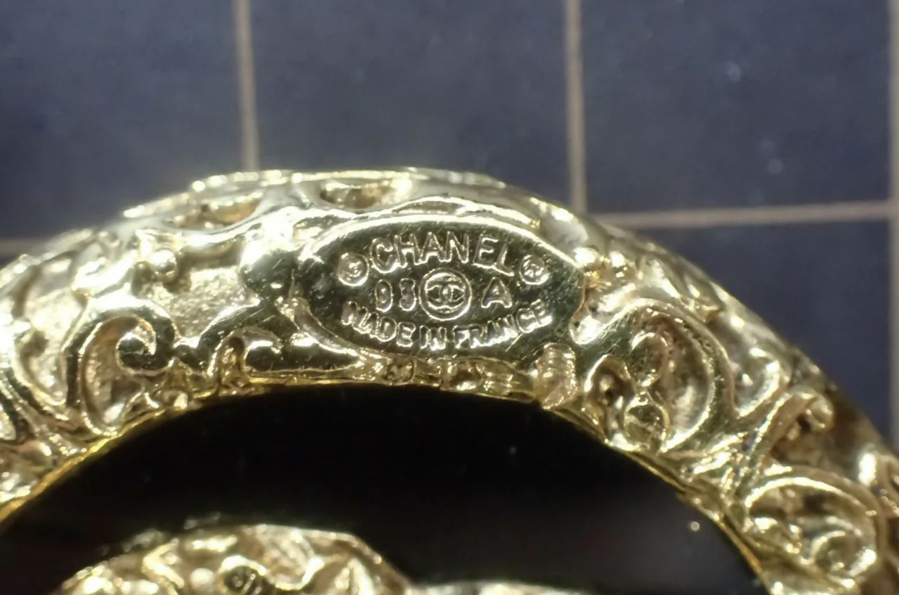Chanel's 93A collection epitomizes understated elegance. This vintage Coco Mark brooch features the iconic interlocking CC in lava gold—a rich, textured finish that captures light with subtle warmth—set against polished black enamel. The round silhouette is a timeless design, equally striking on a lapel, cardigan, or bag. Crafted during the early 1990s, this piece carries the hallmarks of Chanel's golden era of costume jewelry. The lava gold technique creates dimensional depth, while the contrasting black enamel grounds the design in sophisticated restraint. A collector's essential.