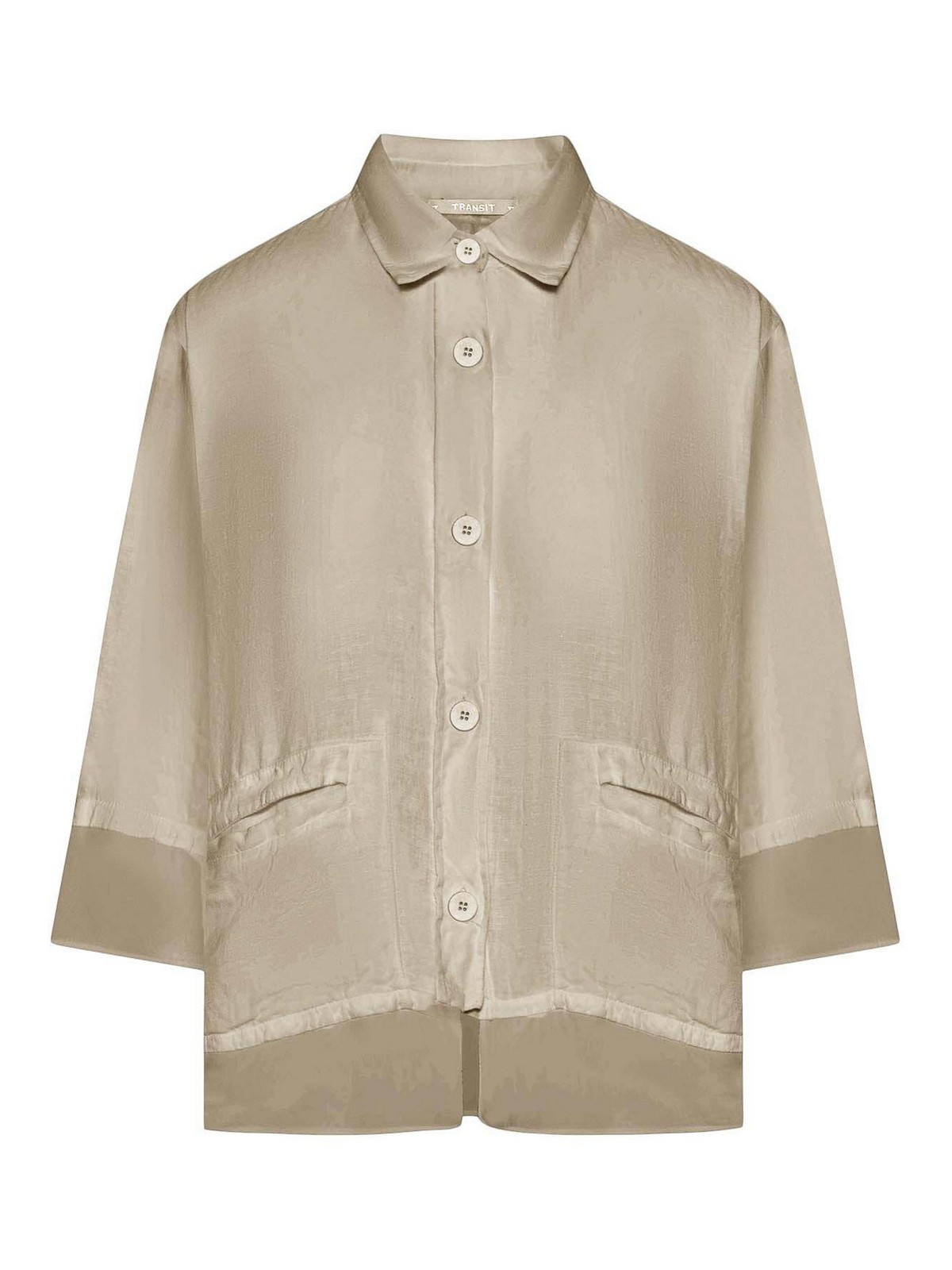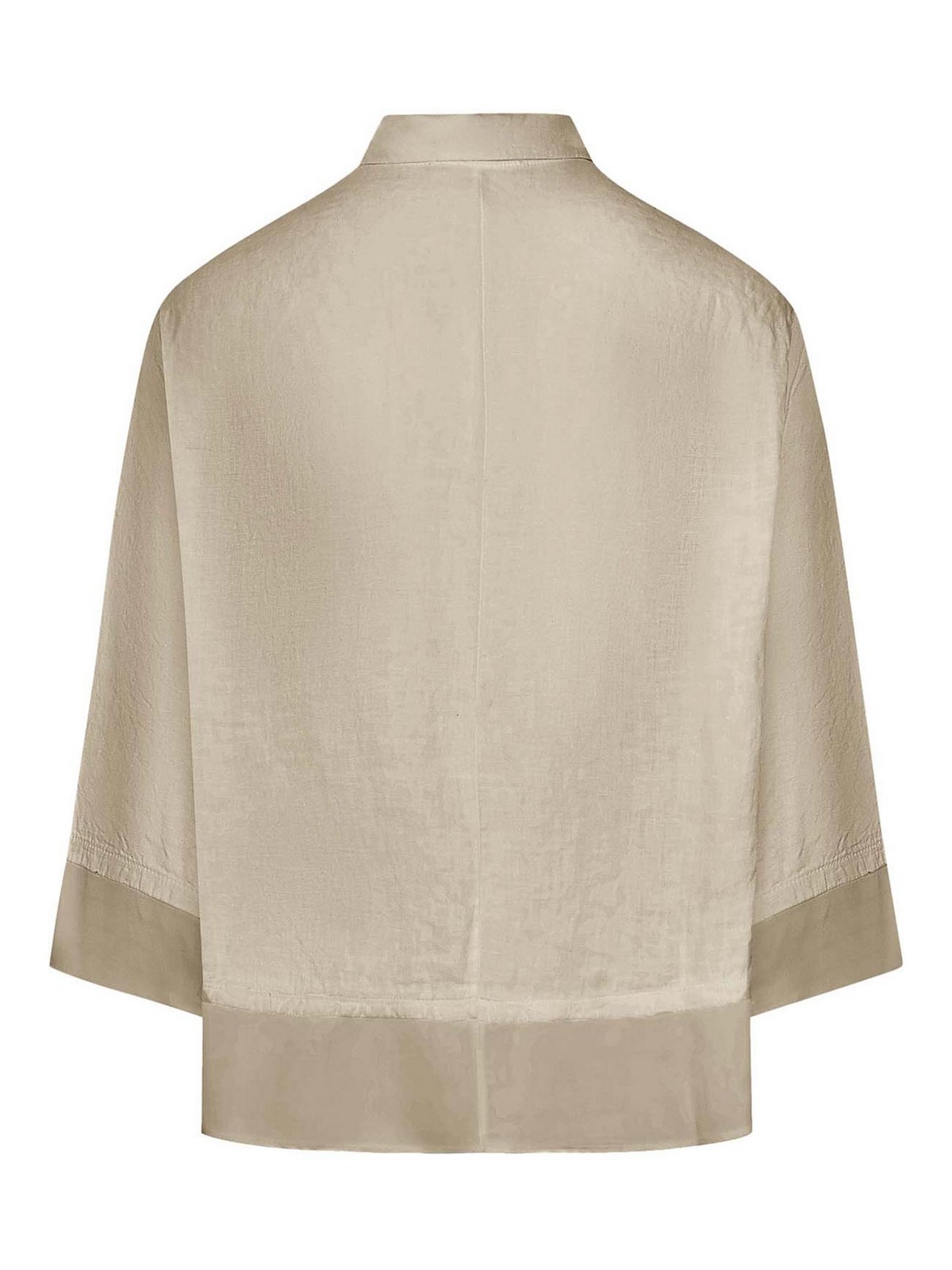 TRANSIT: shirts - 3/4 Sleeve Linen Shirt With Georgette Inserts
