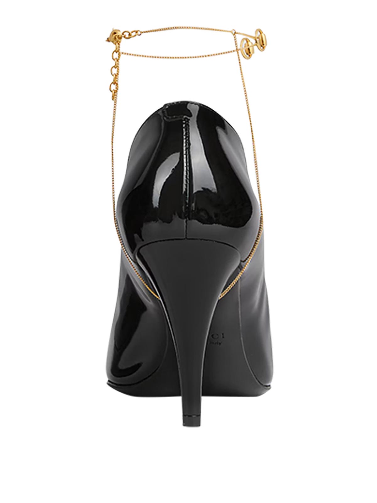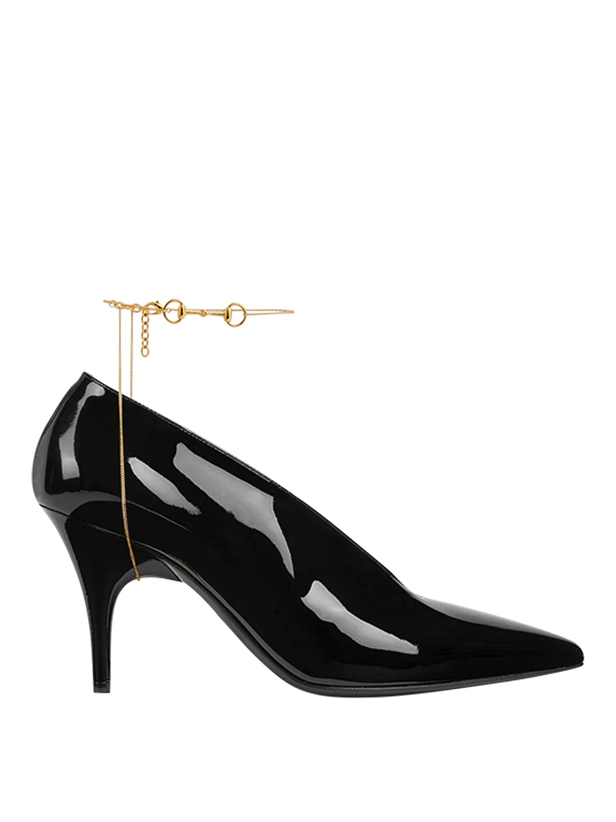 Gucci black gucci 97 pump sabot, pointed toe, patent leather upper
