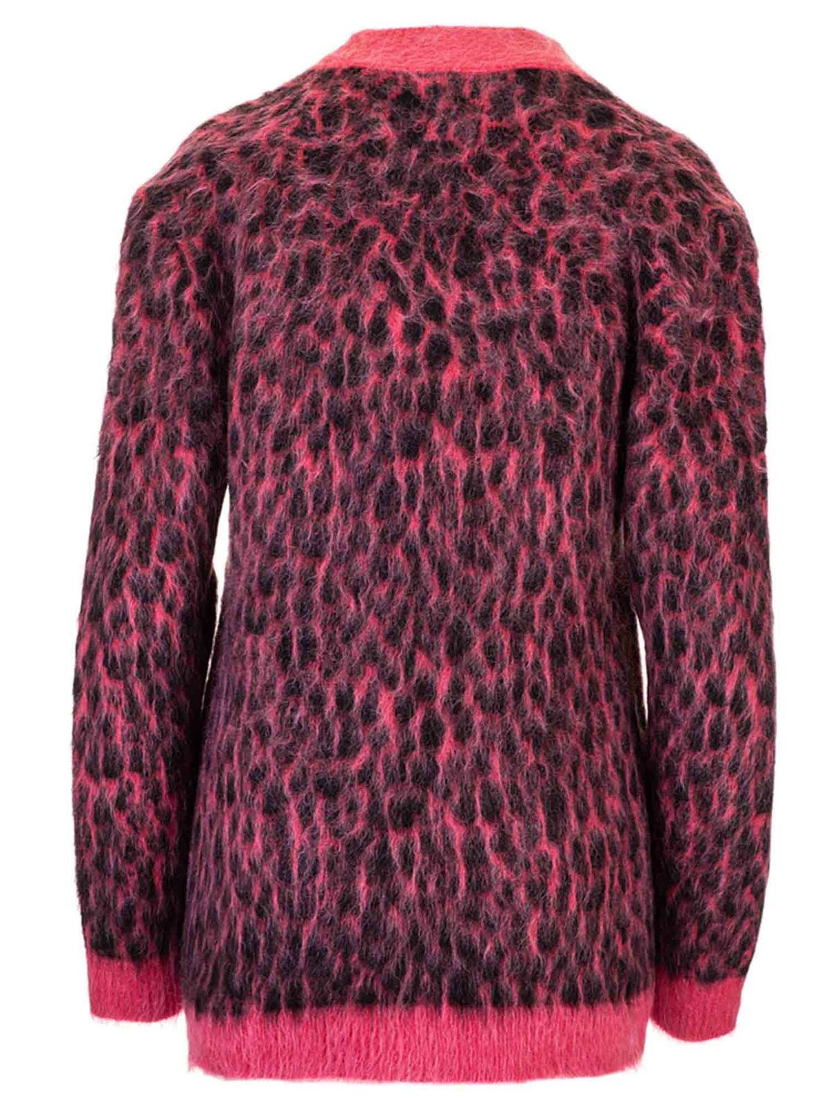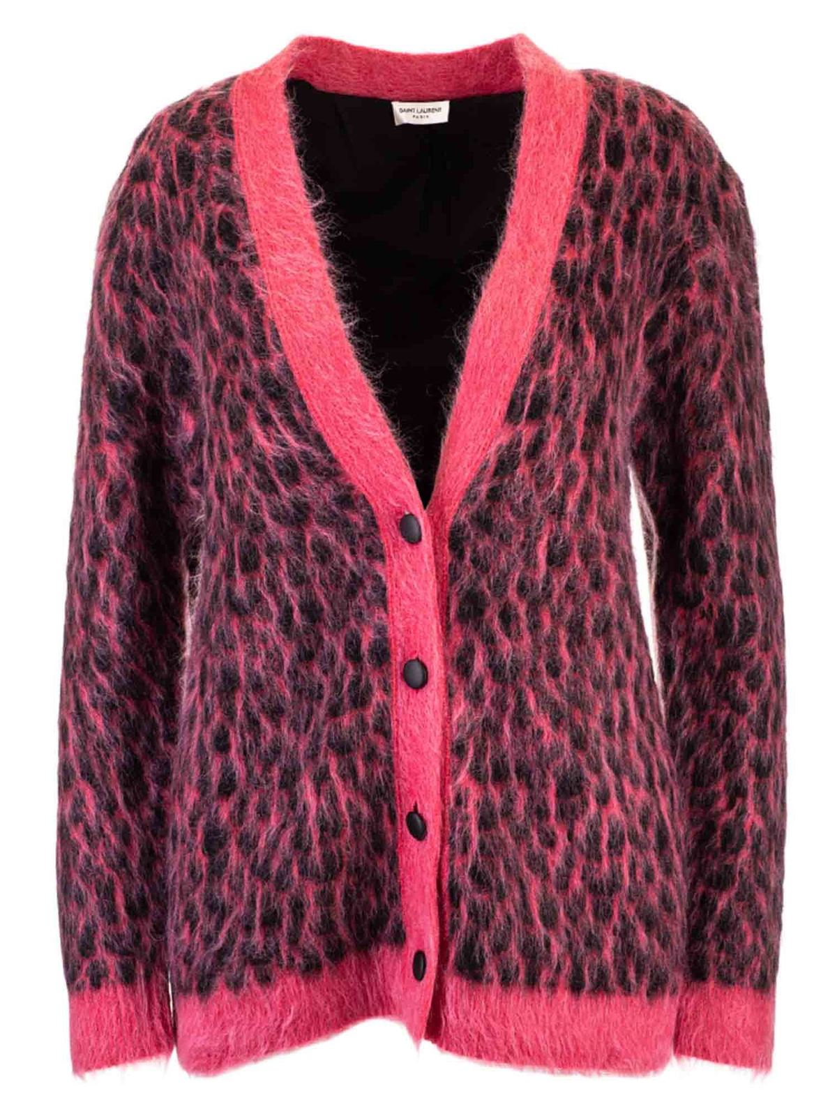 SAINT LAURENT: cardigans - Animalier jacquard cardigan in pink