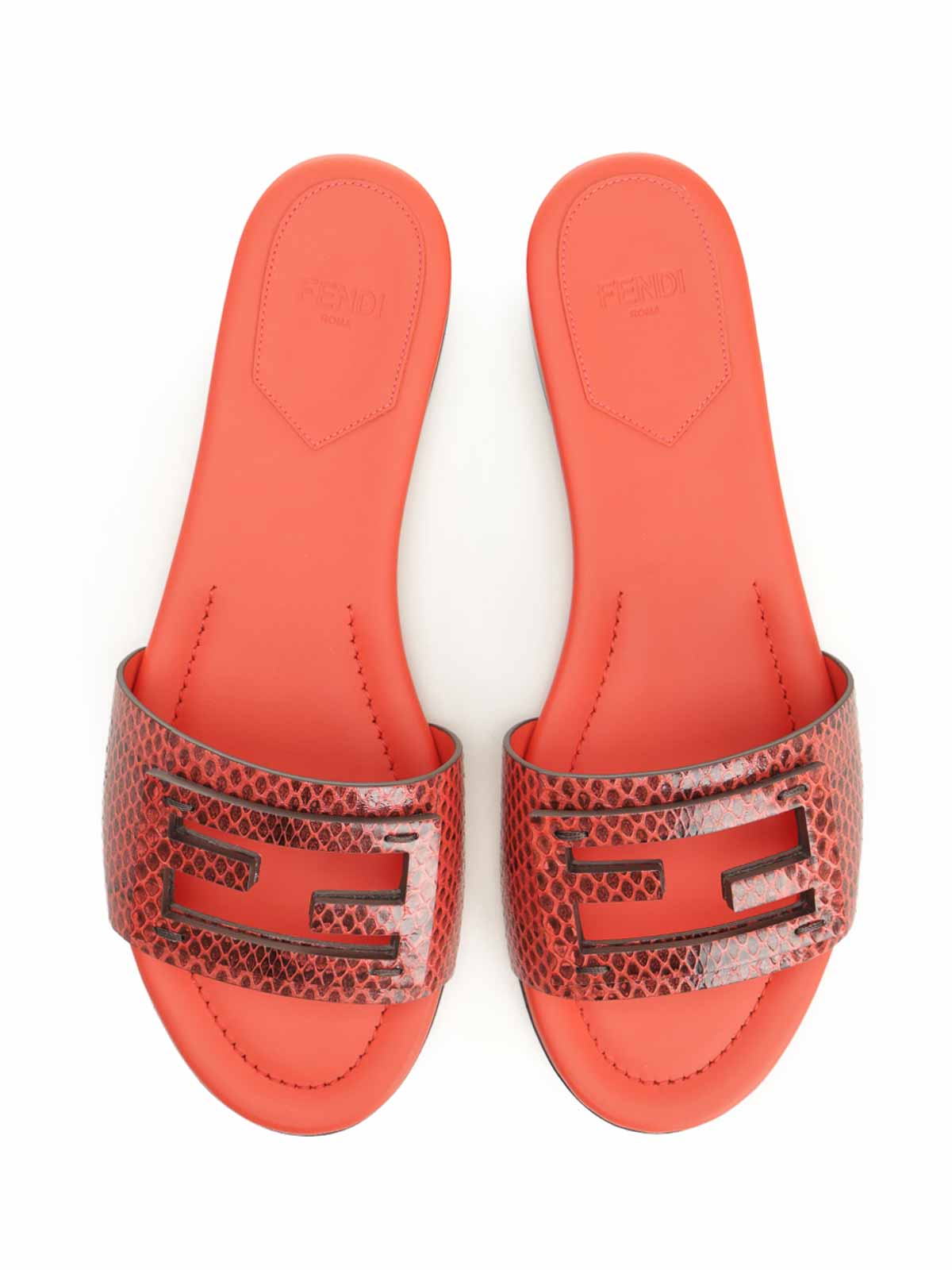 baguette slides in tumbled by fendi with a wide band finished with hand, on, tone selleria macro stitching and tone, on, tone ff baguette motif