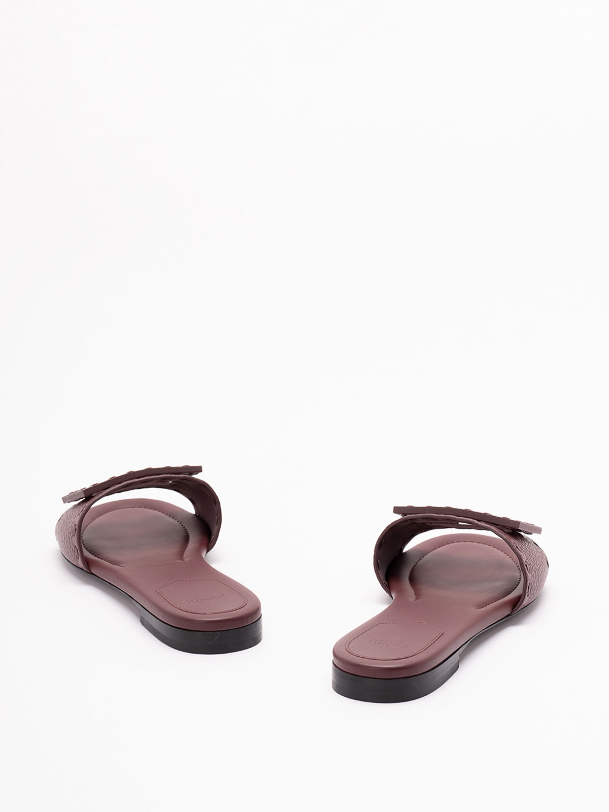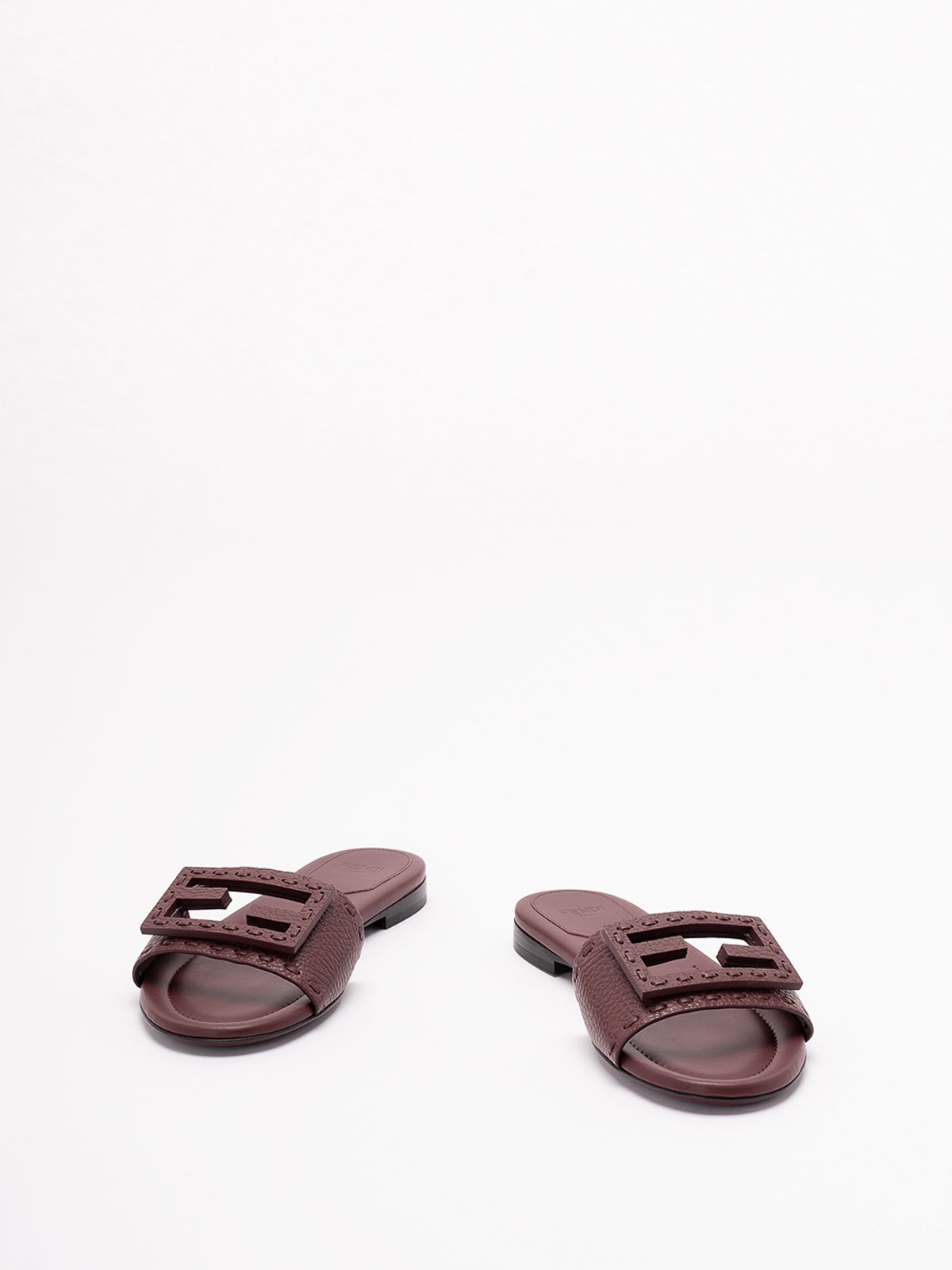 Slides with shaped upper band and flat sole. An essential model characterized by clean finishes.