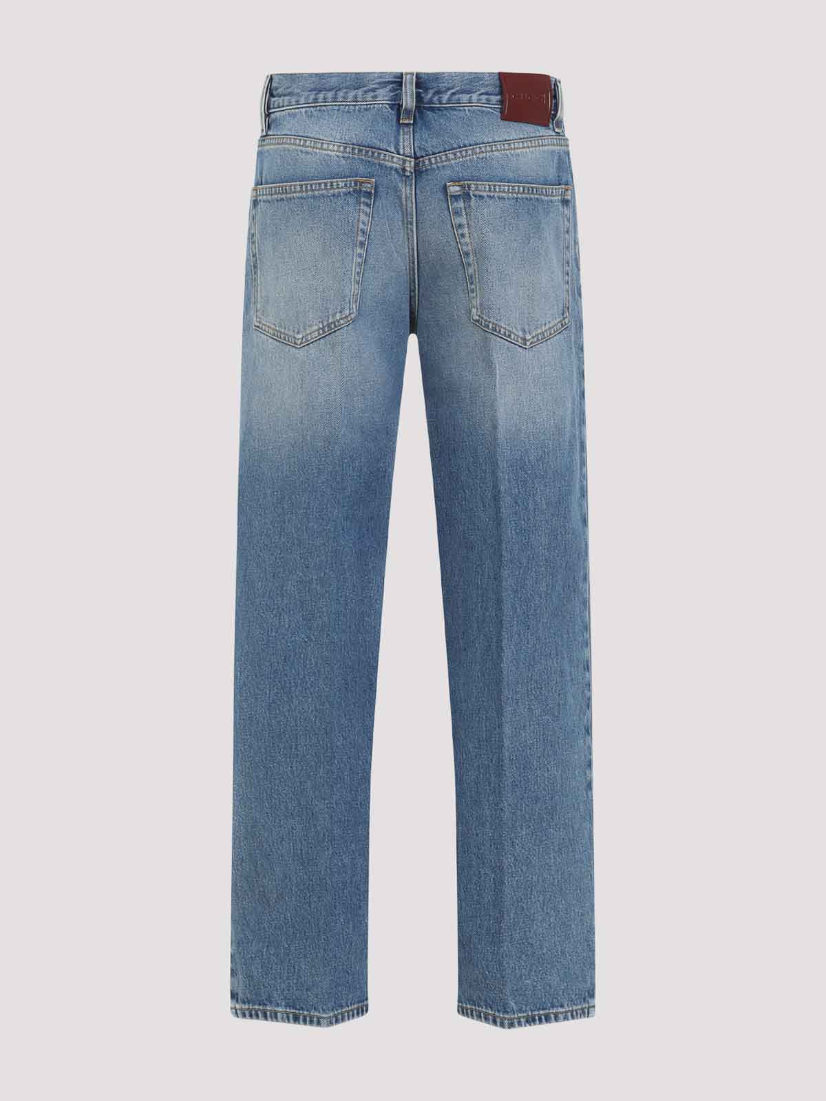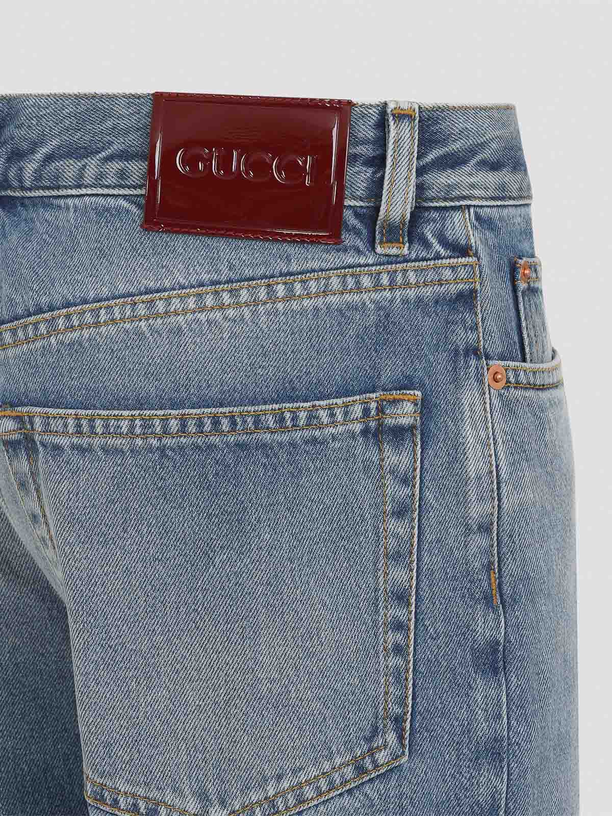 Gucci ballerina light blue jeans crafted from stonewashed light blue denim belt loops, pocket design button and fly, zip signature rosso ancora label at the back waist straight leg