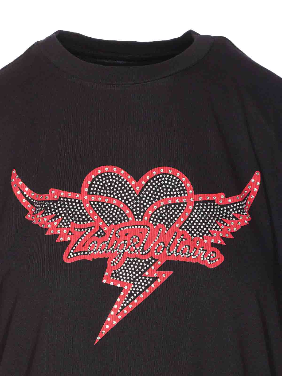 Zadig & Voltaire black edwin t-shirt, crewneck, print heart with strass details, print on the back