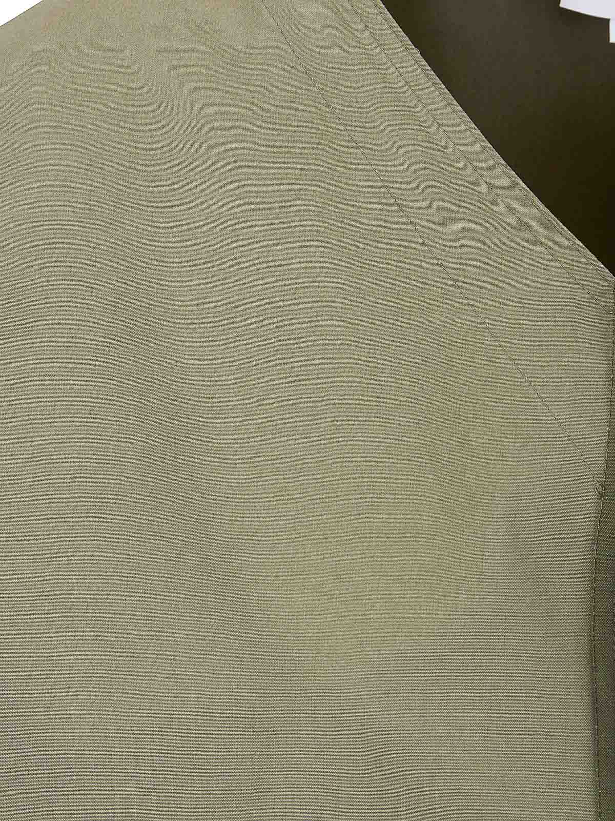 Short cotton shirt with hidden closure, side pockets with internal cut-out, oversized and short fit, cape-style design.