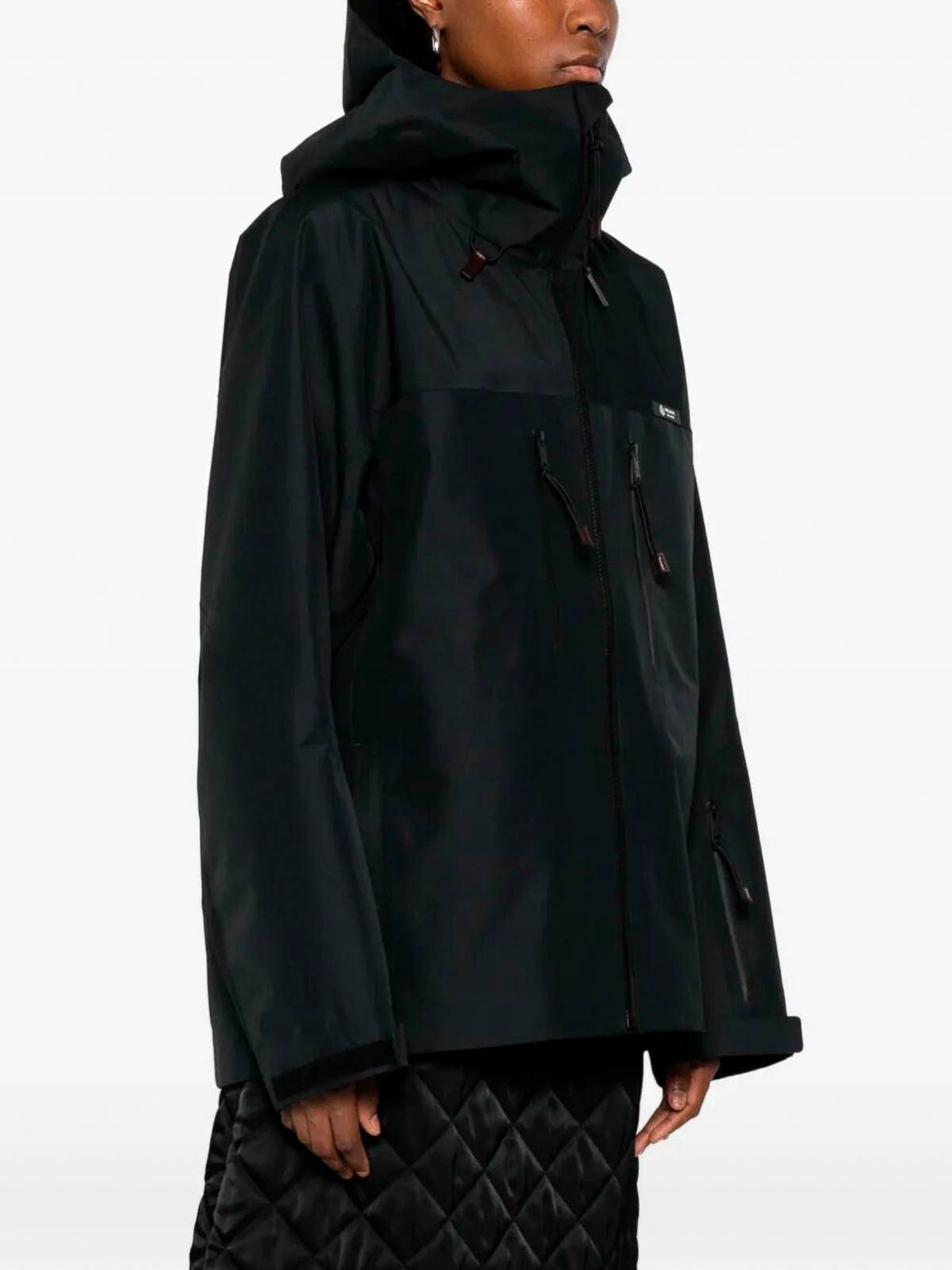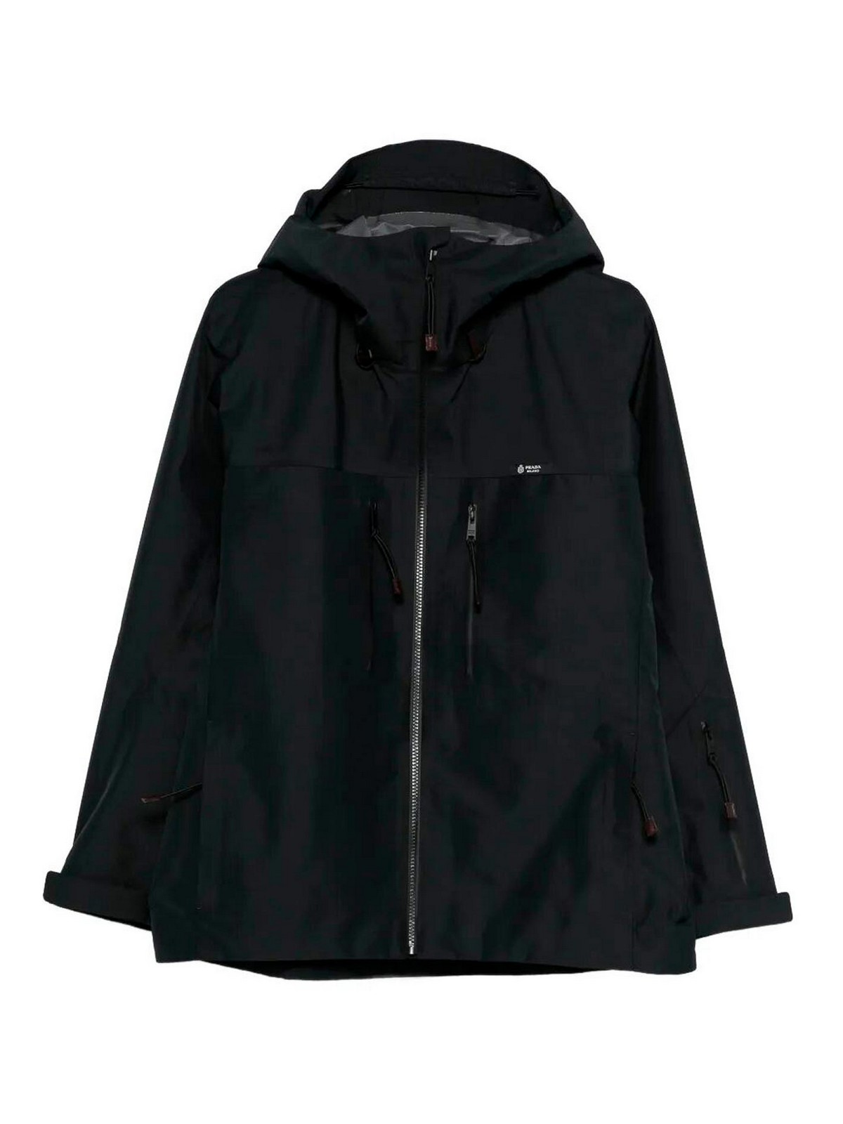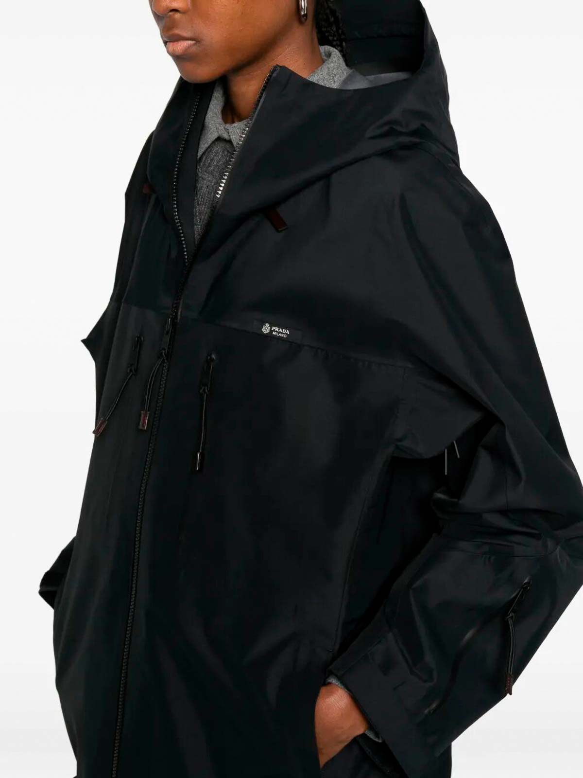 Modern blouson jacket with structured silhouette and refined Prada detailing.