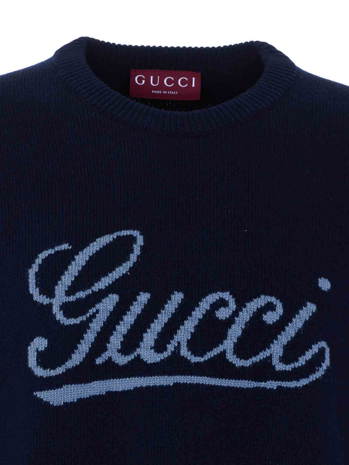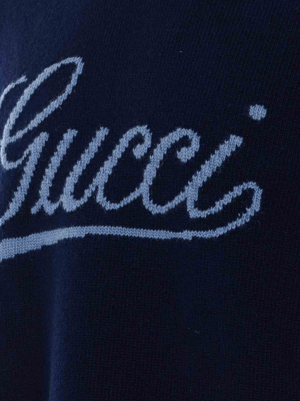 Gucci blue sweater, crewneck, embroidered logo on the front
