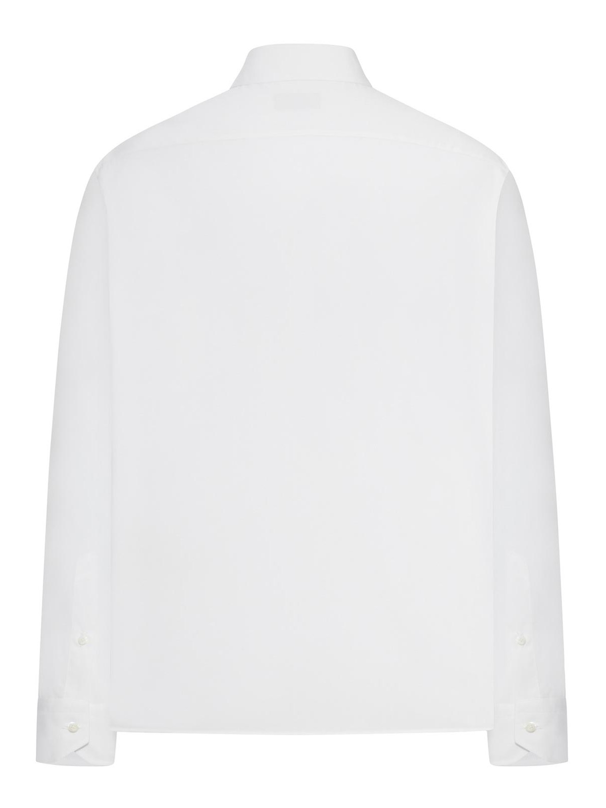 Boxy fit shirt, long sleeves, zip chest pocket, covered button, poplin, pocket finished with contrasting fendi roma logo, fendi o`lock slider, straight hem, color white