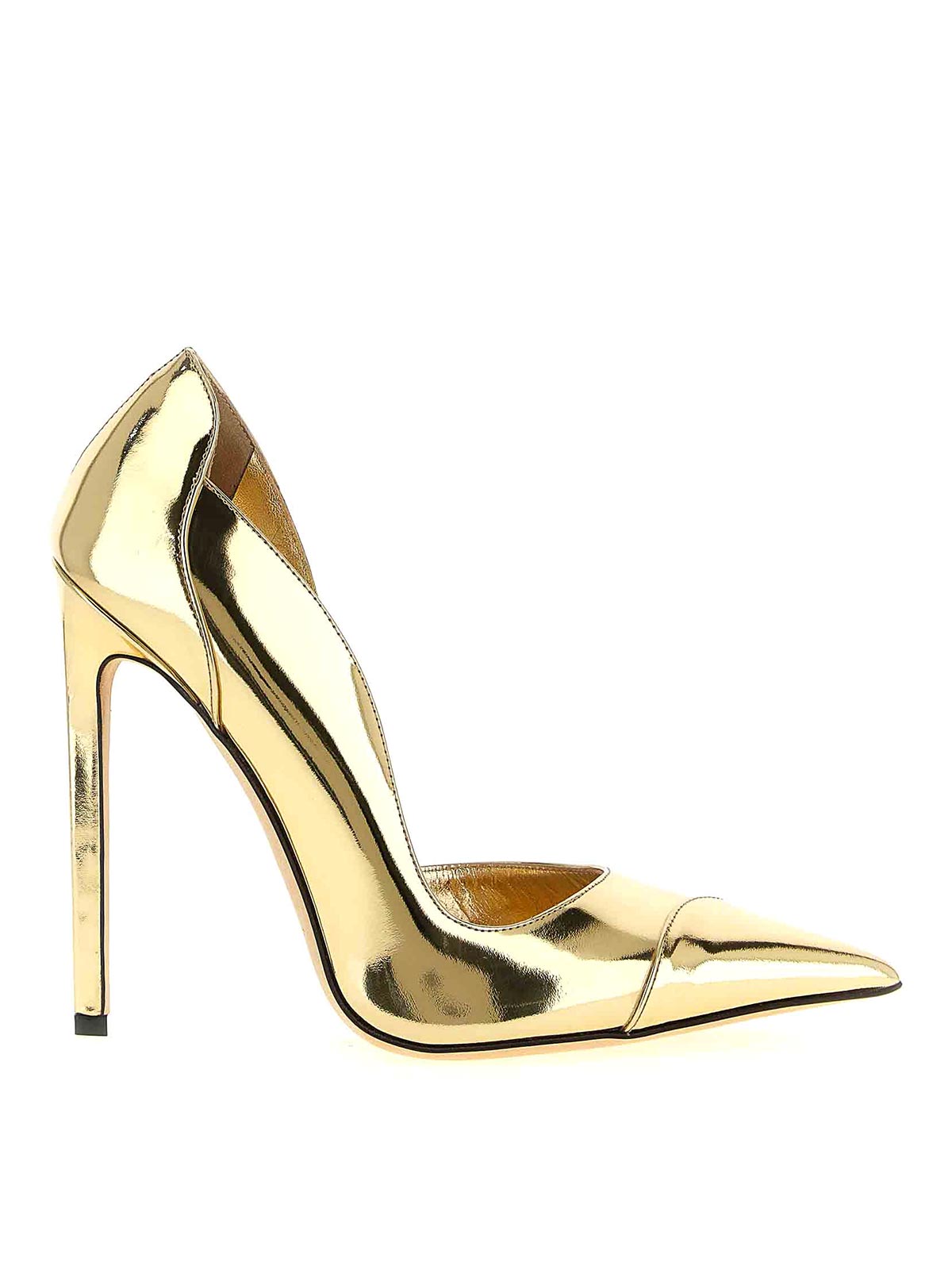 brigitte' pumps in shiny laminated leather, iconic side curvature, pointed model with tone-on-tone stitched band, stiletto heel, leather sole.