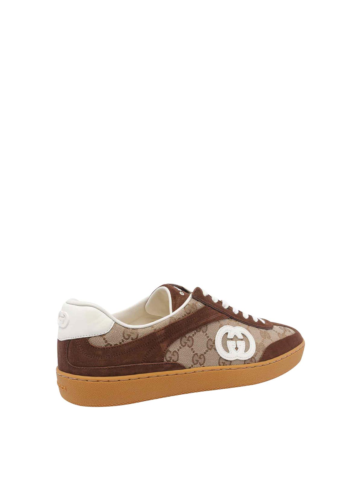 Gucci brown g sneakers round toe and lateral gg logo laces