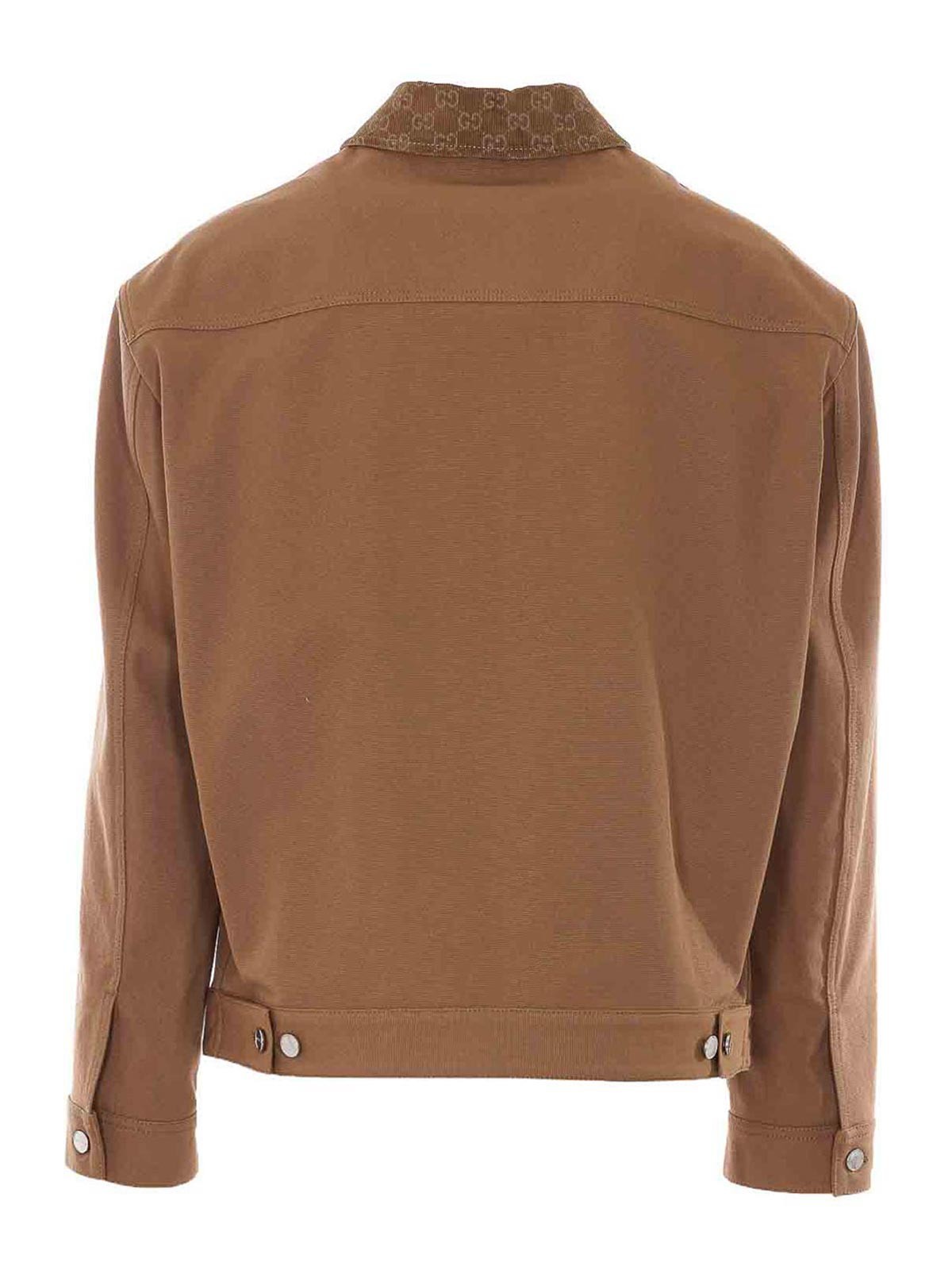 GUCCI: casual jackets - Brown Jacket With Frontal Zip Closure