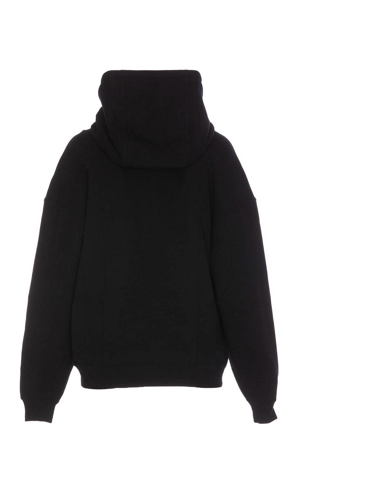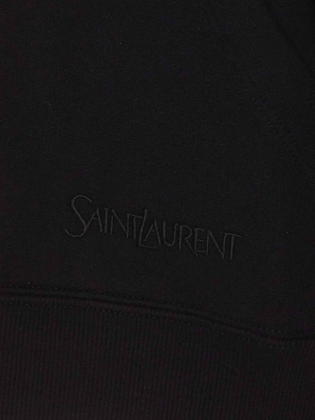 Saint laurent black hoodie high neck half zip embroidered tone on tone logo at bottom long sleeves frontal kangaroo pocket