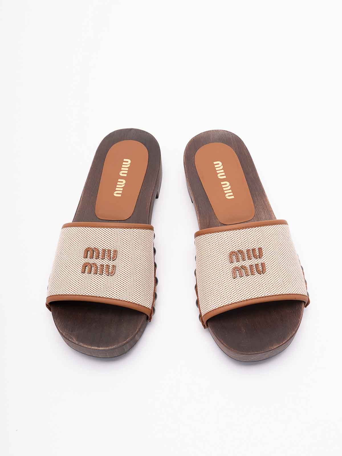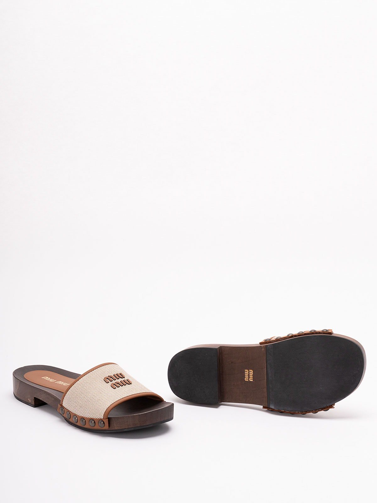 MIU MIU: mules shoes - Canvas And Leather Clogs