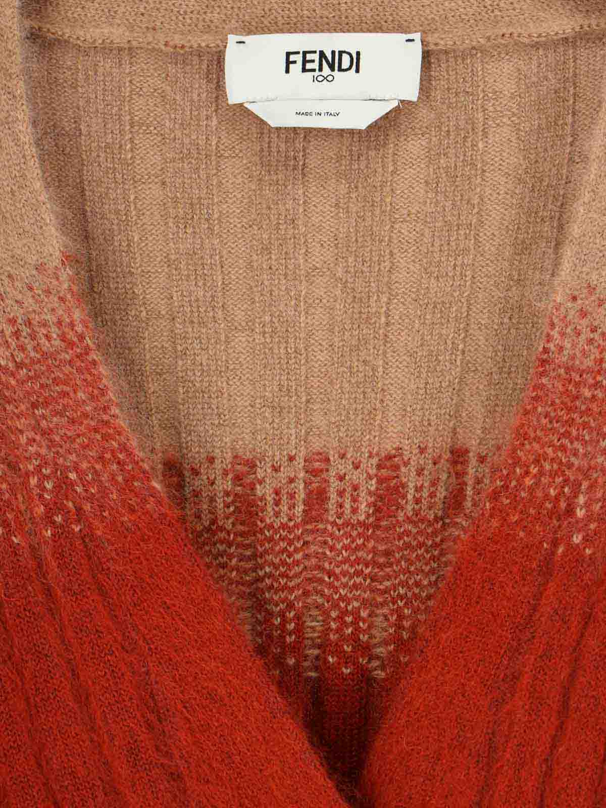 Fendi mohair blend cardigan, multicolour, v-neck, dropped shoulders, horn button closure, two side pockets, straight hem.