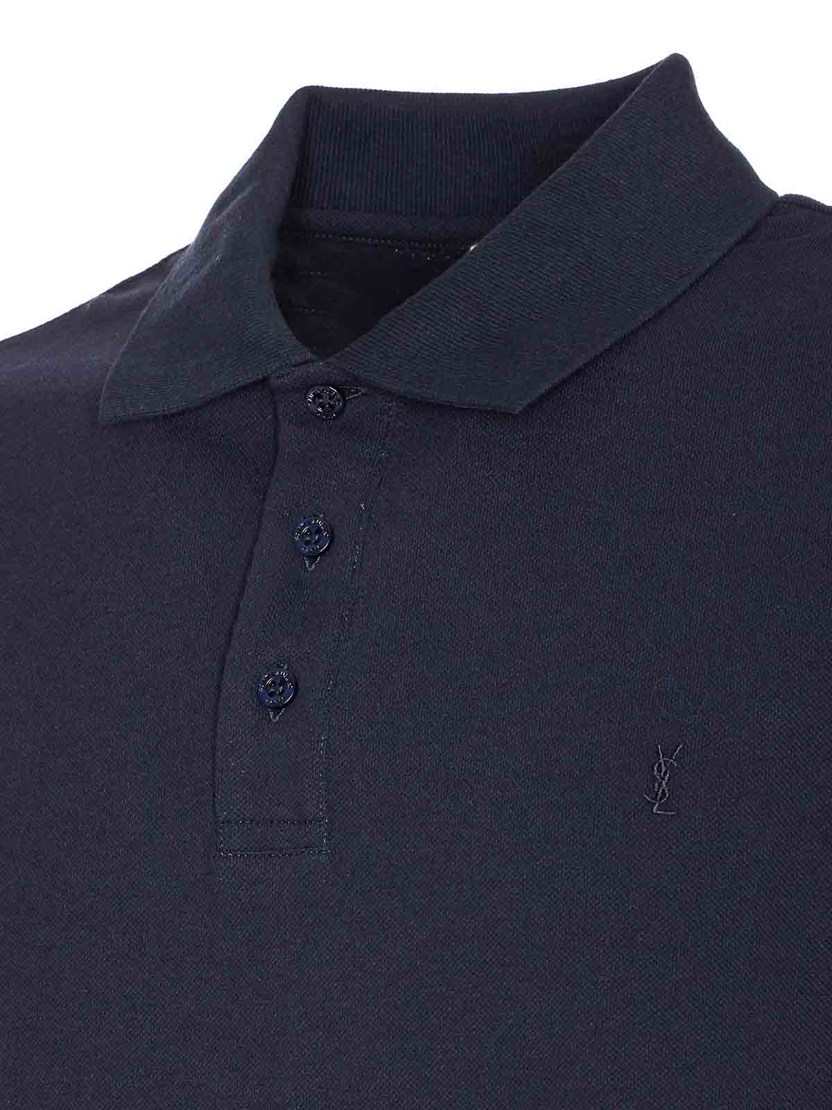 Saint laurent black polo short sleeves classic collar buttons frontal tone on tone embroidered logo