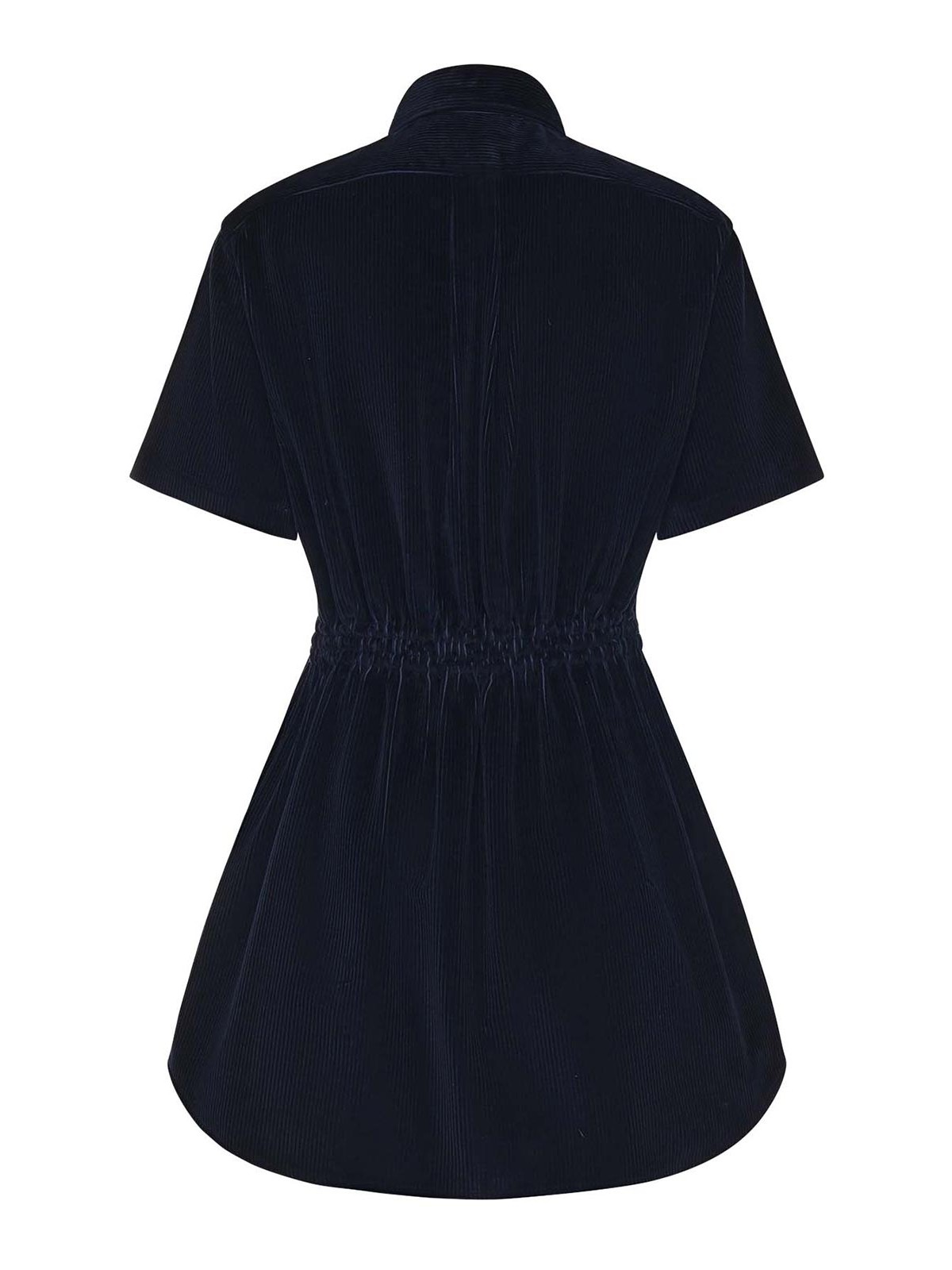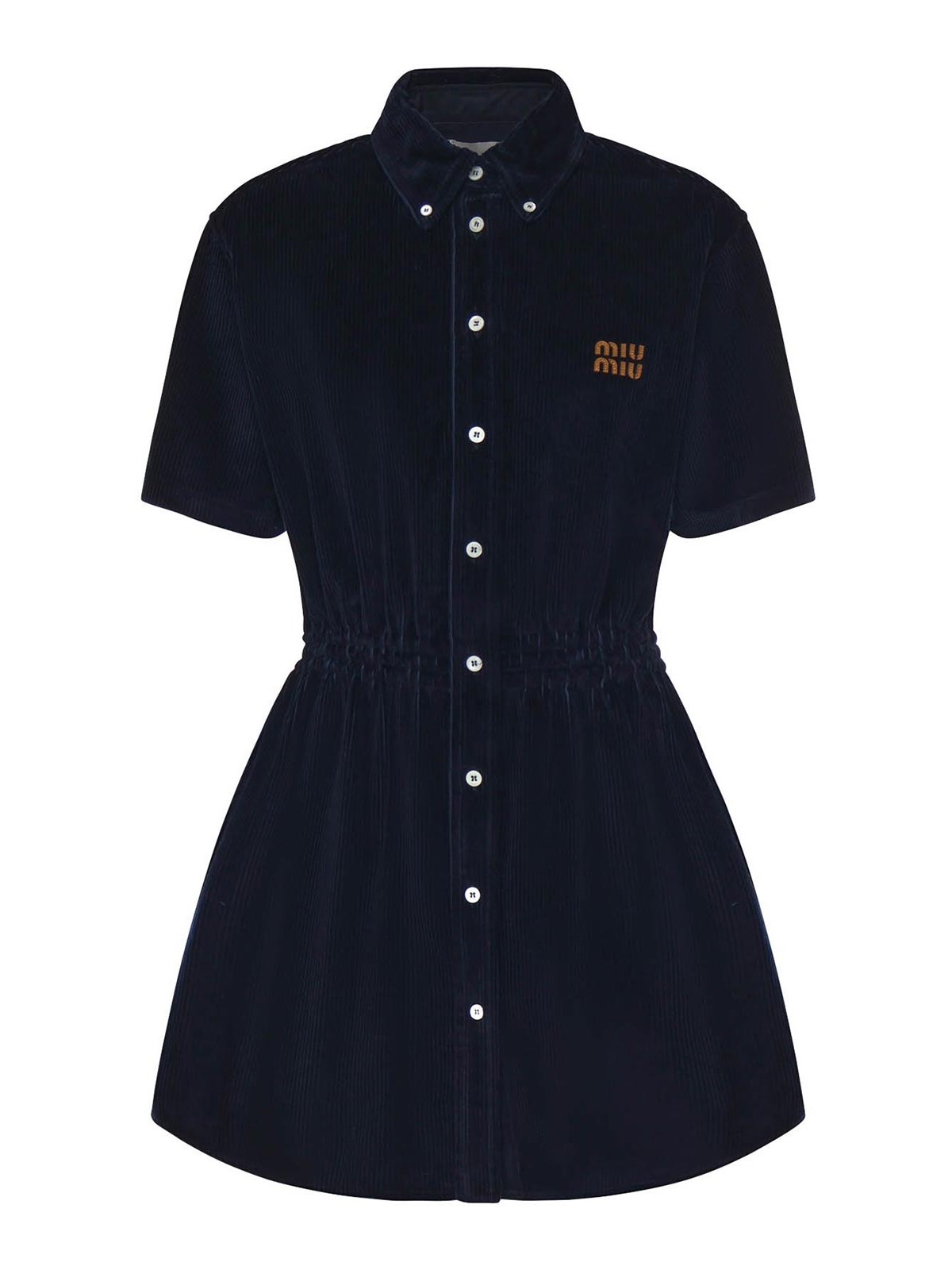 made of cotton, front button closure, short sleeves, logo embroidery, made in italy, size shown is 40, color: blue