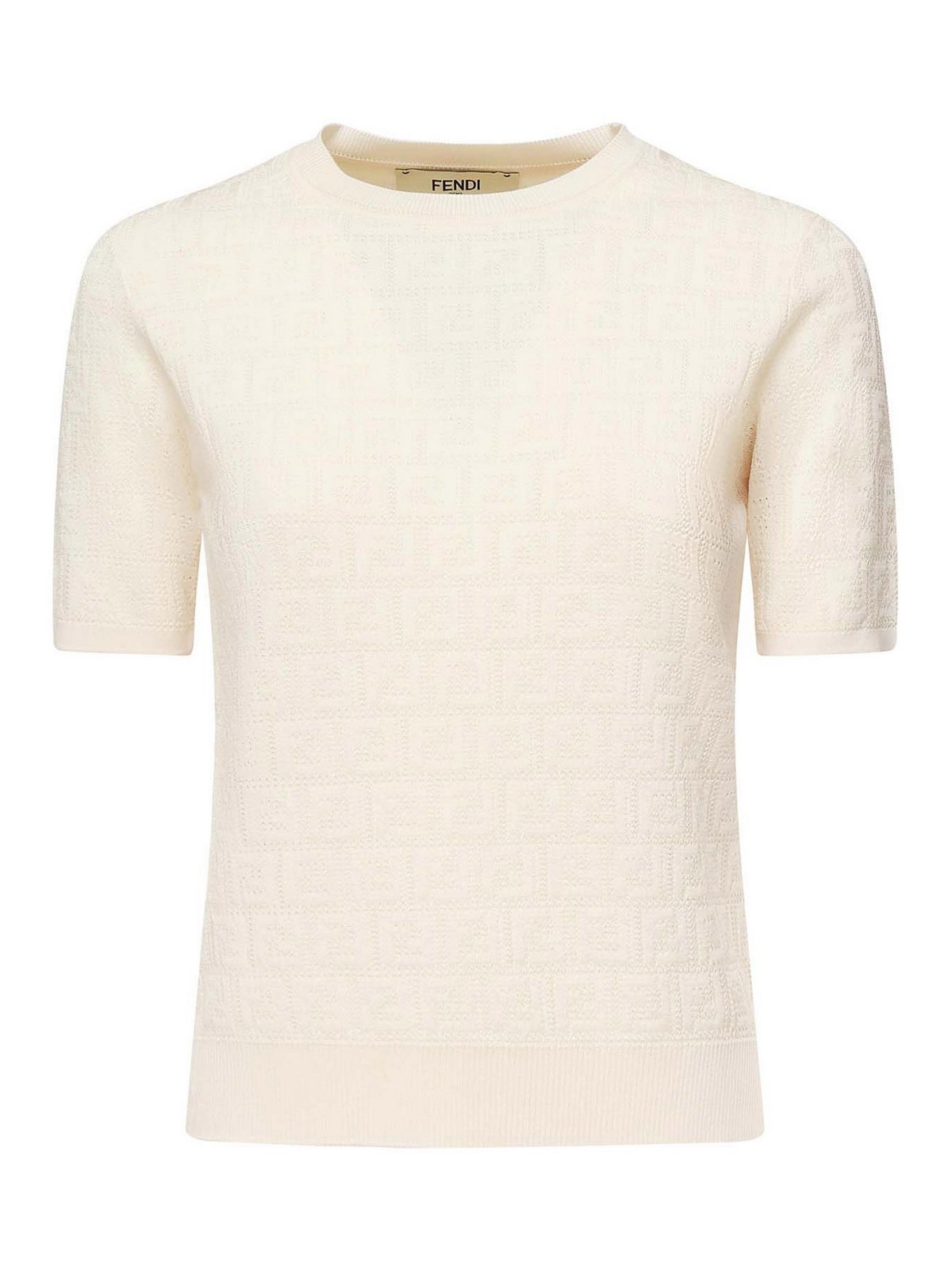 FENDI: crew necks - Cotton And Viscose Ff Jacquard Sweater