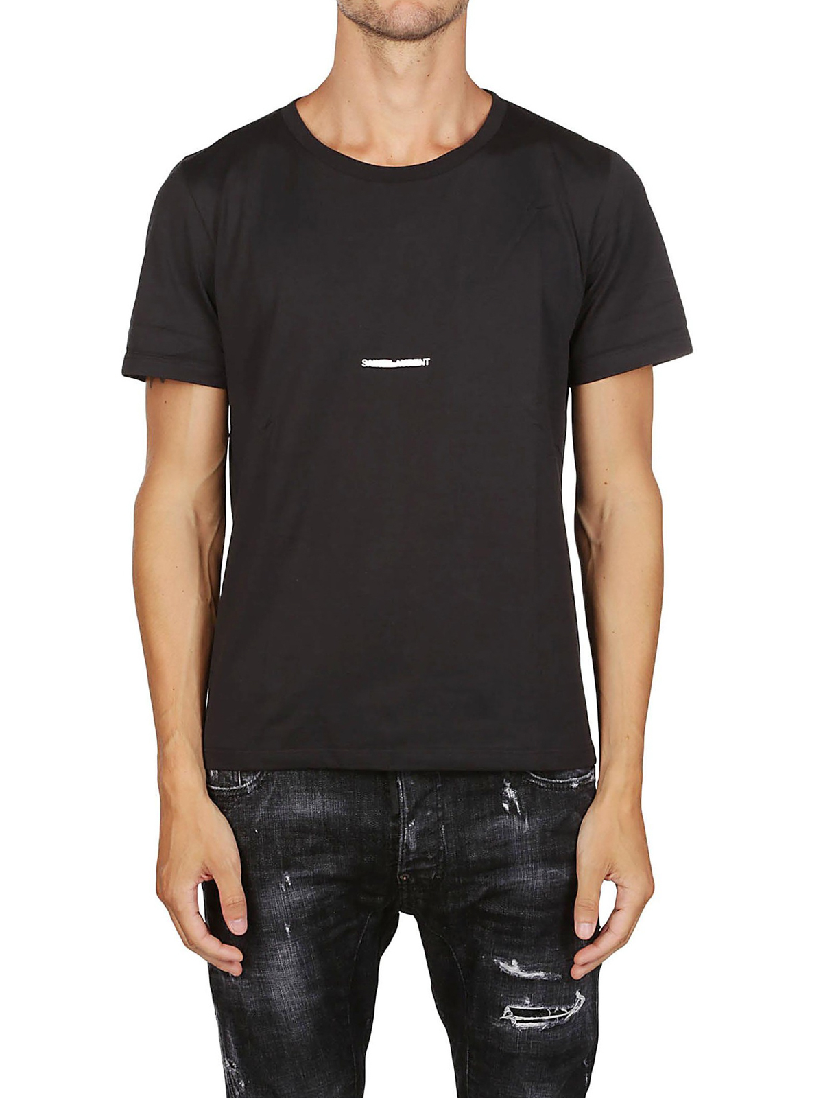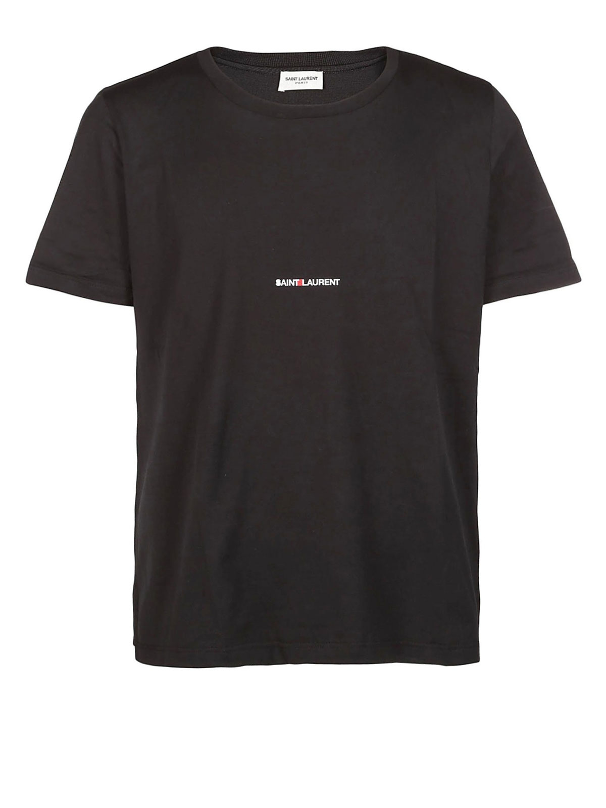 SAINT LAURENT: t-shirts - Cotton jersey logo black Tee