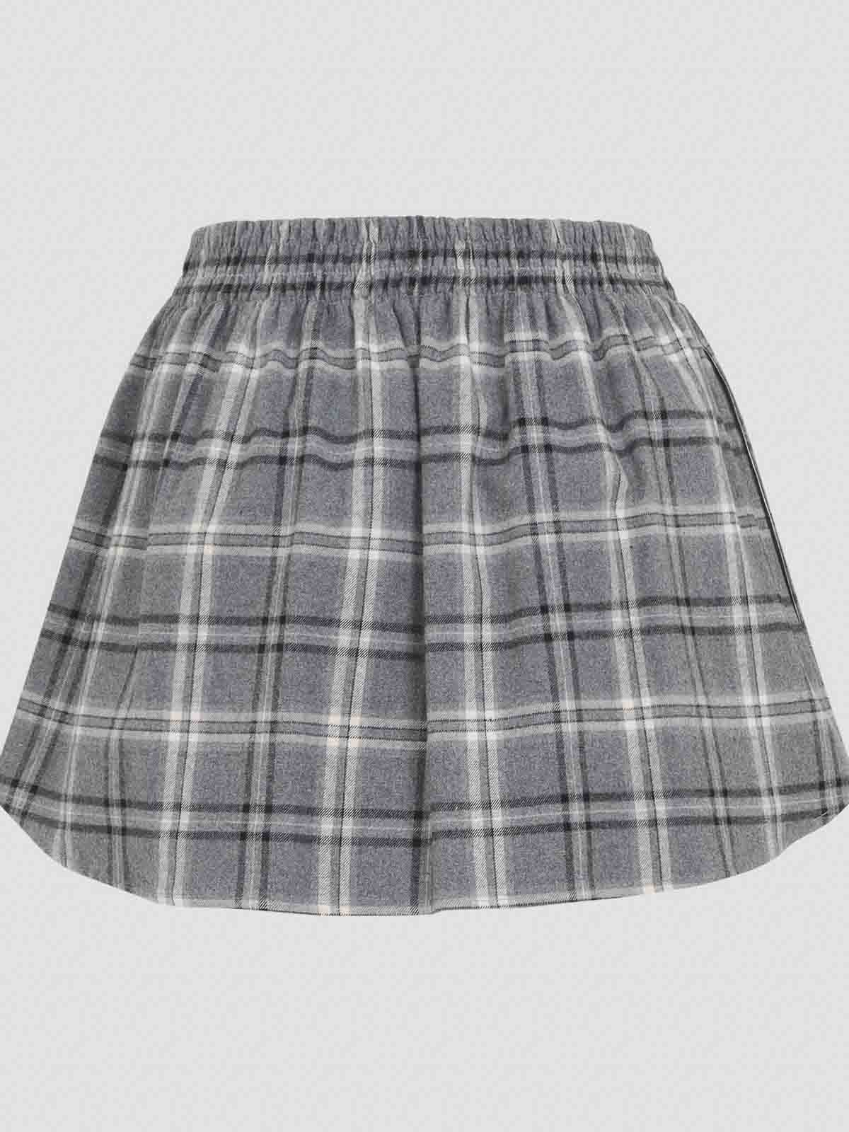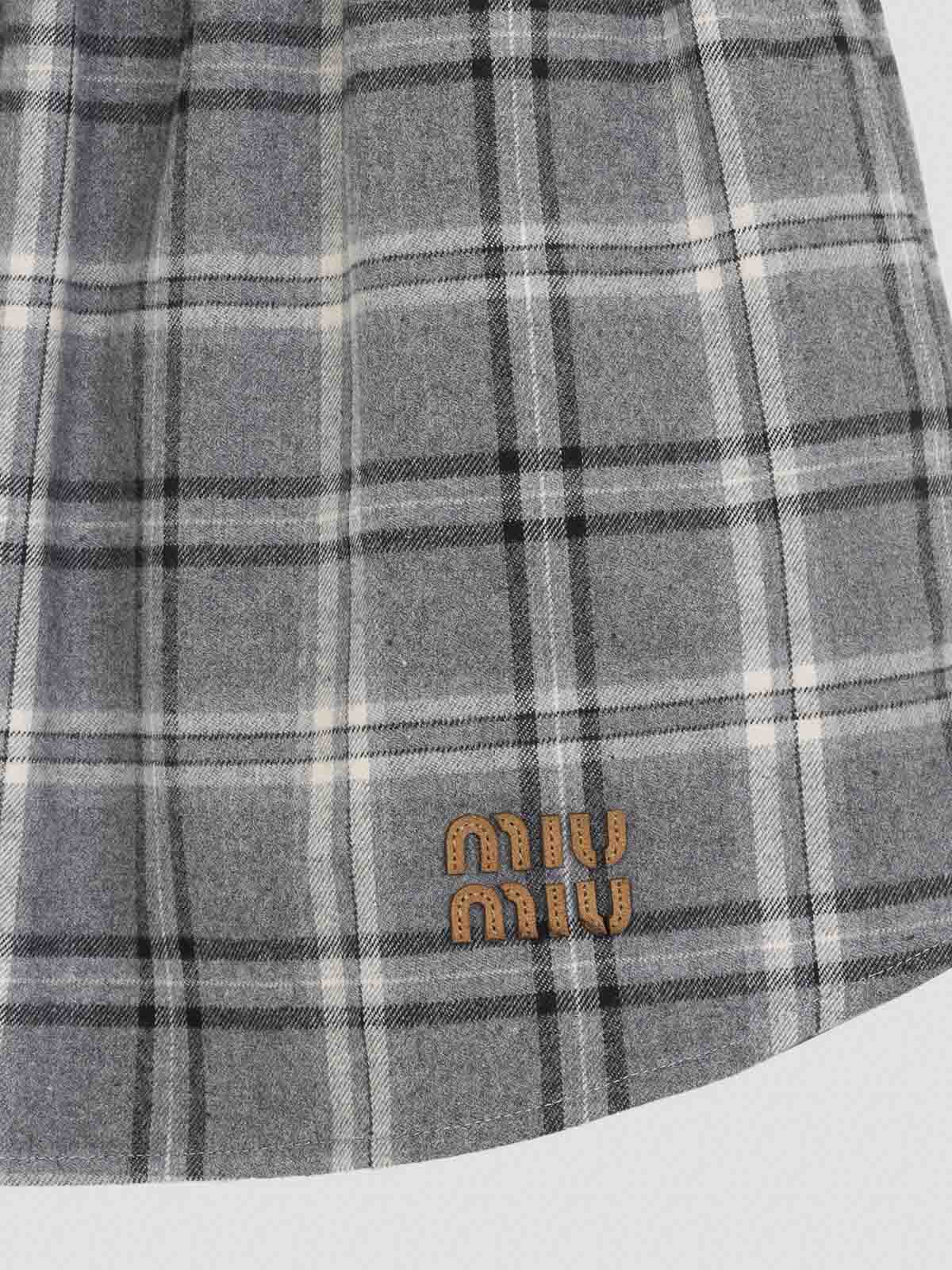 Miu miu gray checkered cotton midi skirt. gray checkered cotton, elastic waistband, front button fastening, round hem, logo embroidery on front. regular fit.