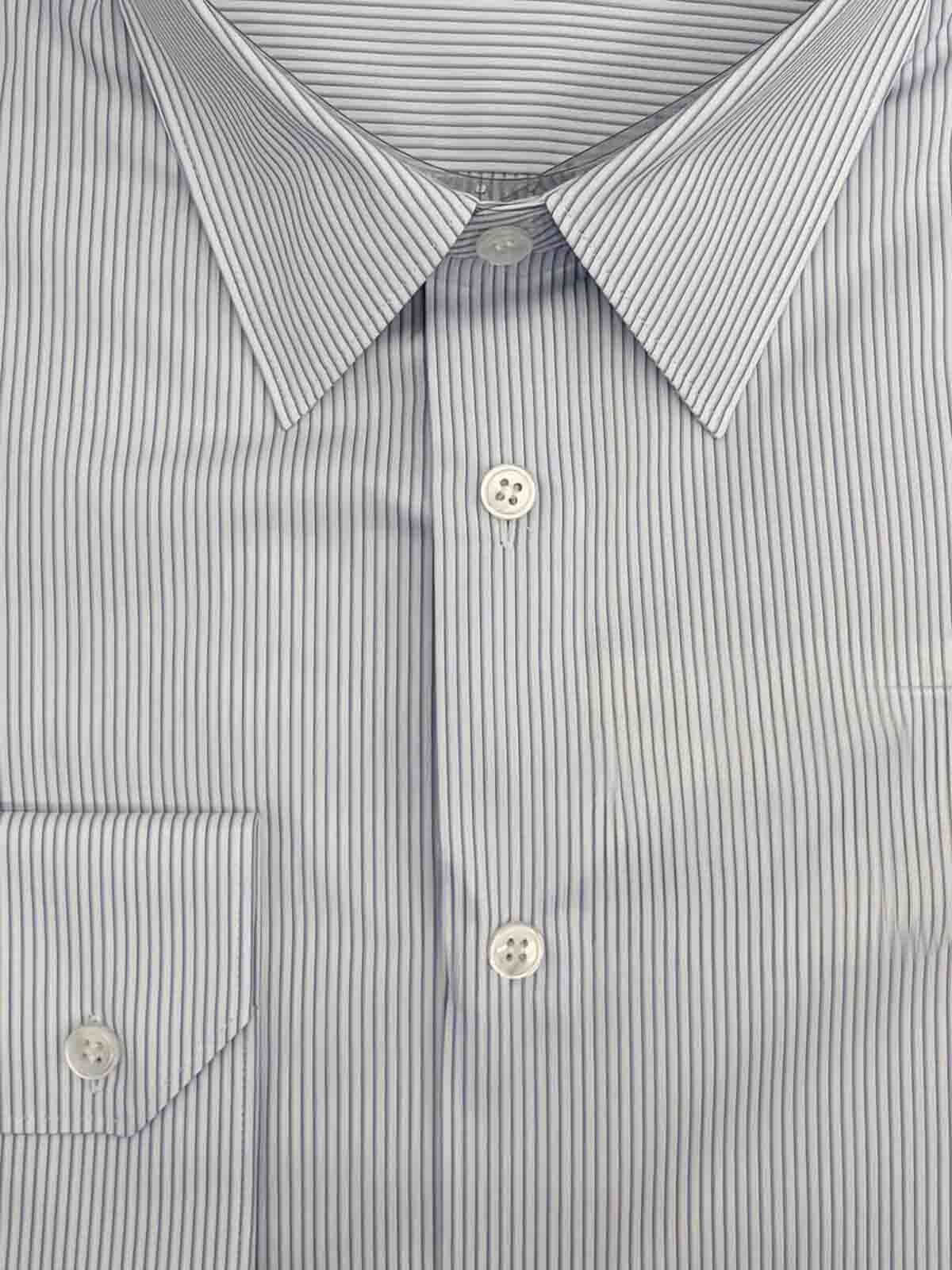 White striped button fastening point collar buttoned cuffs