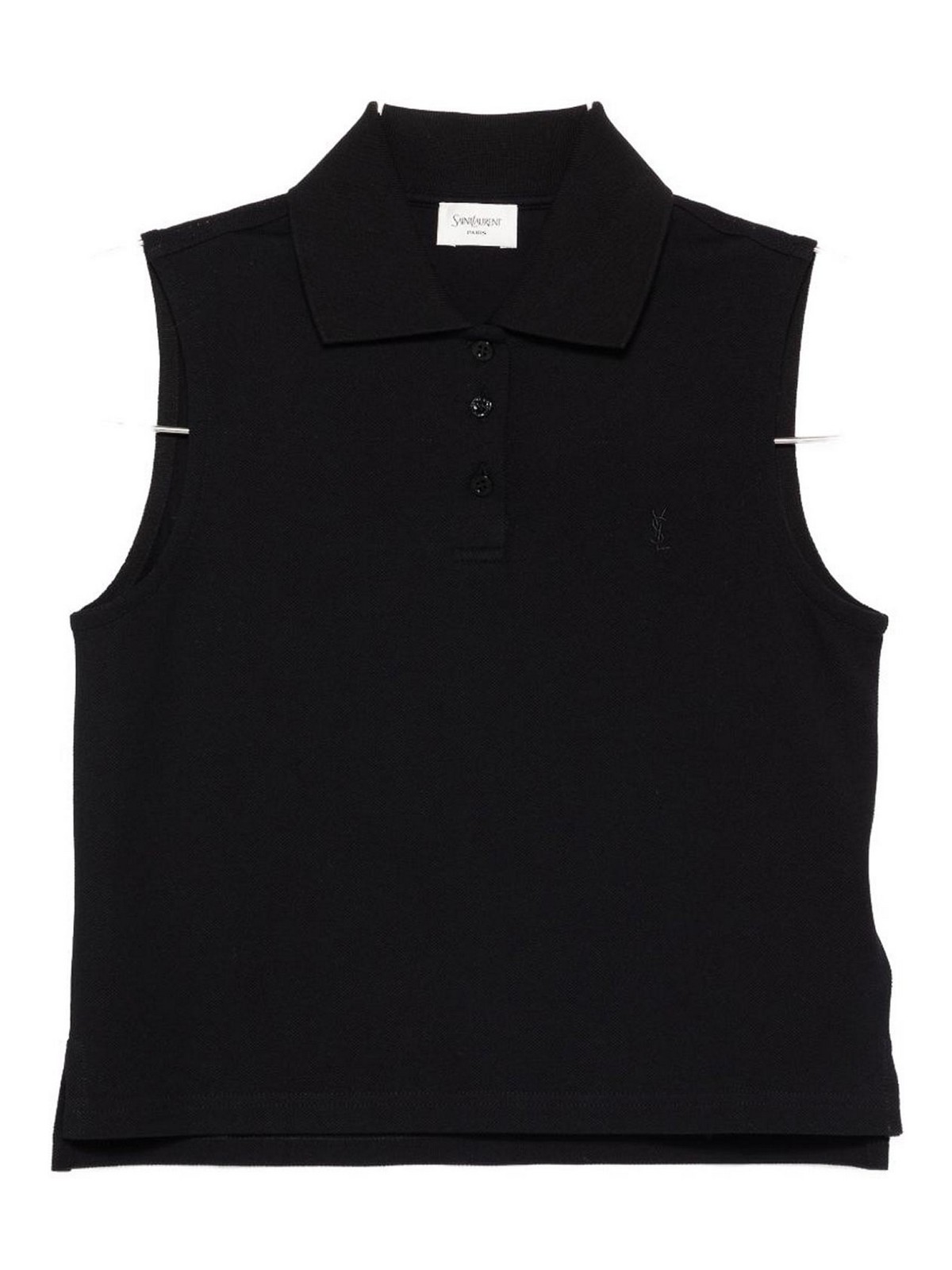 SAINT LAURENT: polo shirts - Cotton Sleeveless Polo Shirt