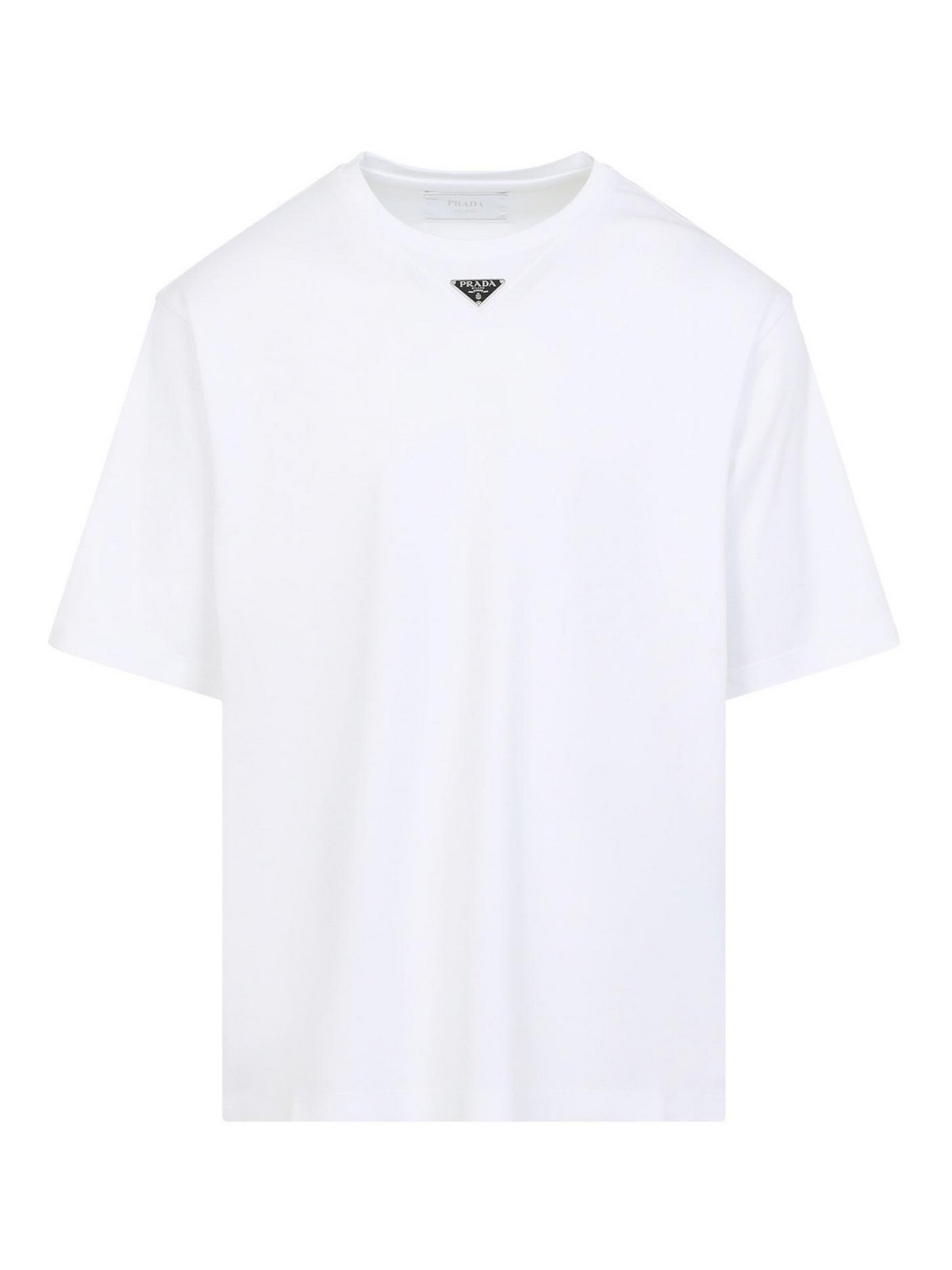Prada white T-shirt white crew neck enameled triangle logo on the short sleeves straight hem oversize fit