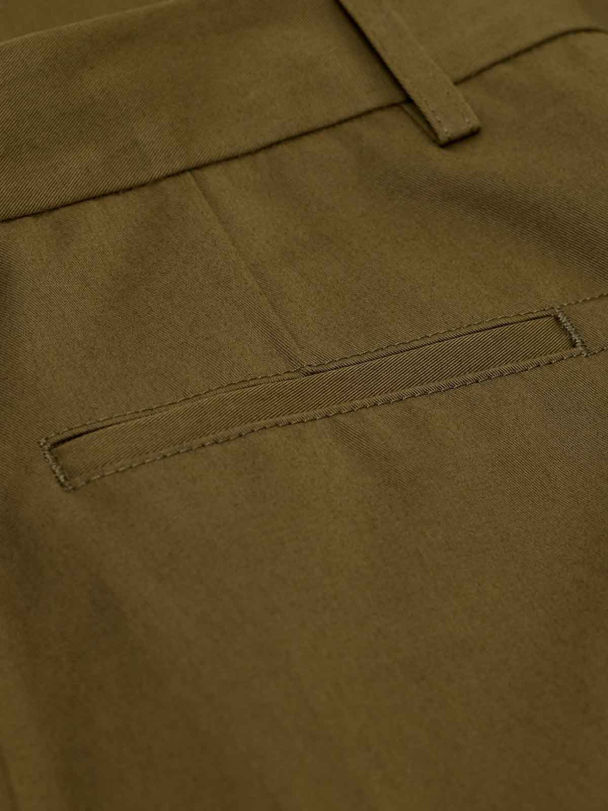 Olive green pleated front belt loops front pockets back welt pocket straight leg