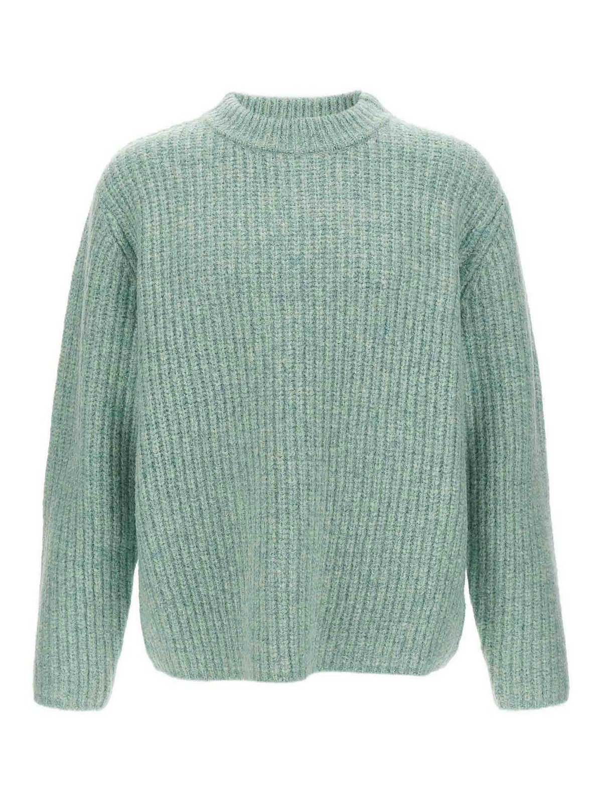 darko' sweater in brushed wool blend yarn with mlange effect, crew neck, long cuffed sleeves and dropped shoulders.