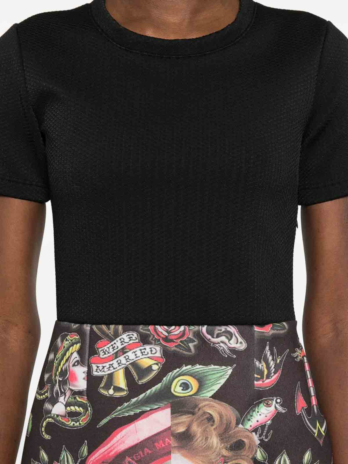 Black printed short sleeves round neck
