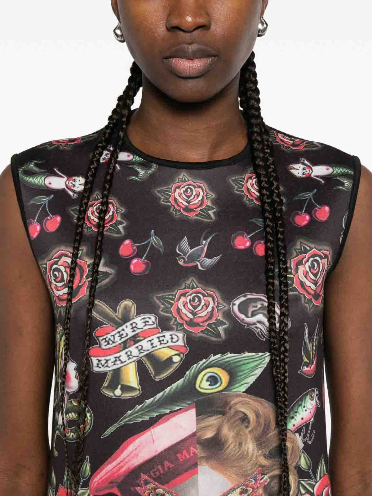 Black graphic print round neck sleeveless