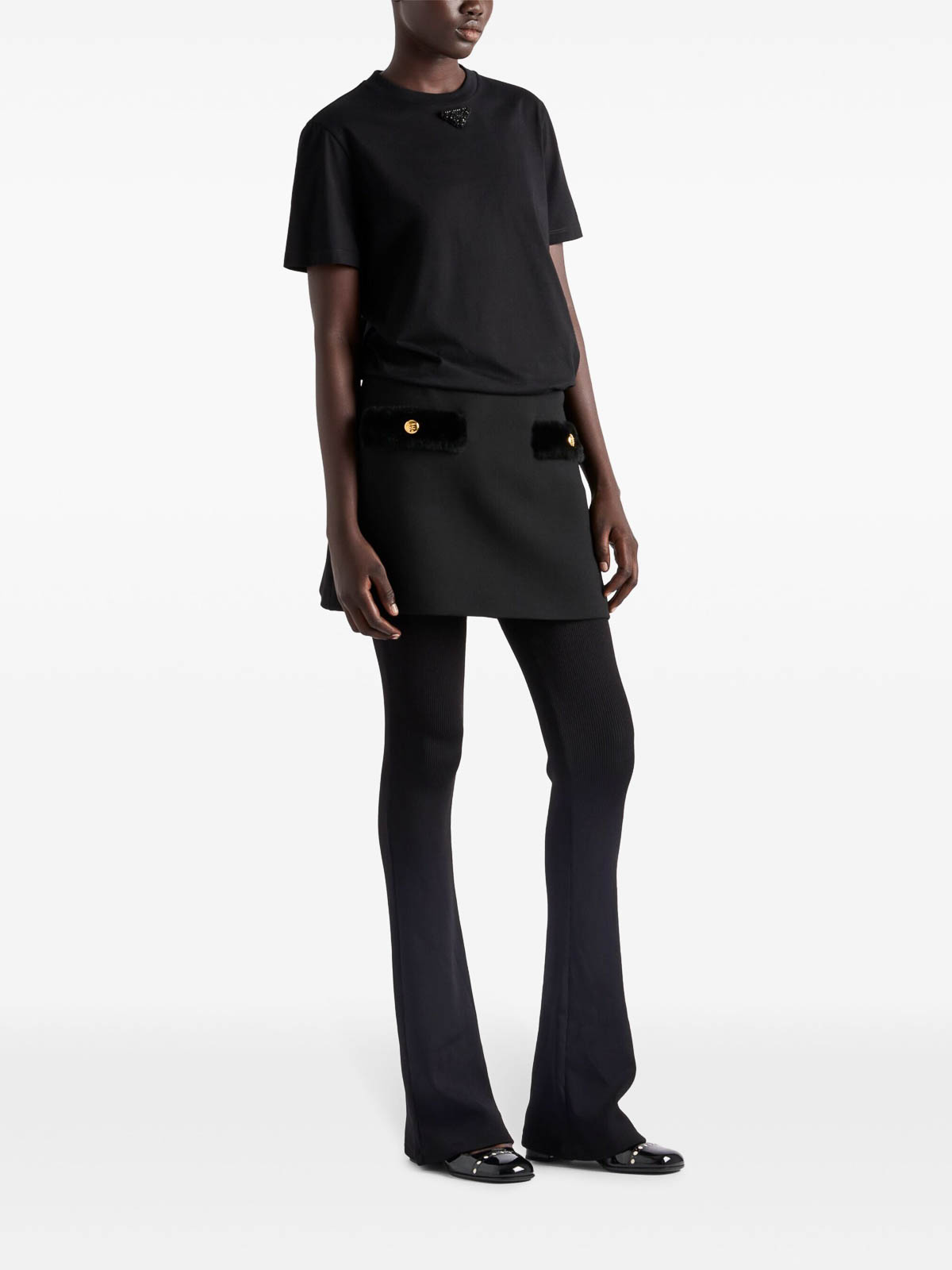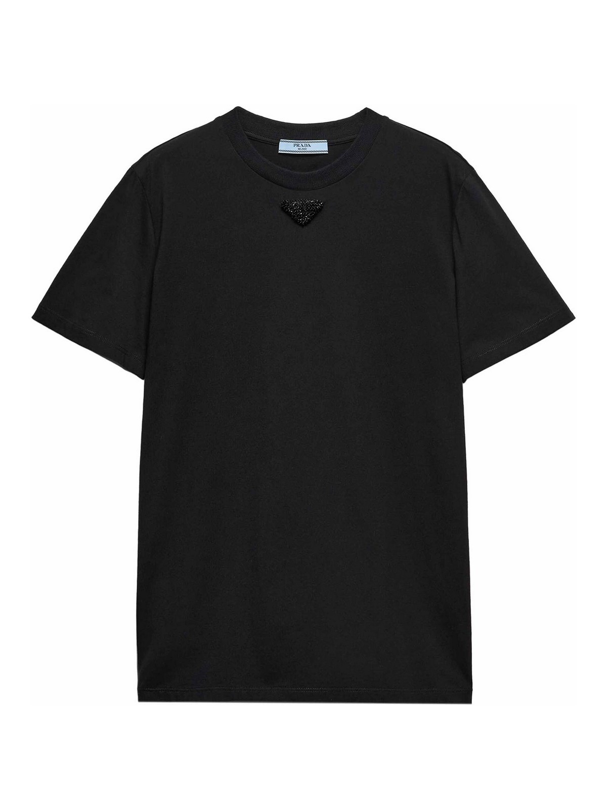 PRADA: t-shirts - Embroidered-Triangle Jersey T-Shirt
