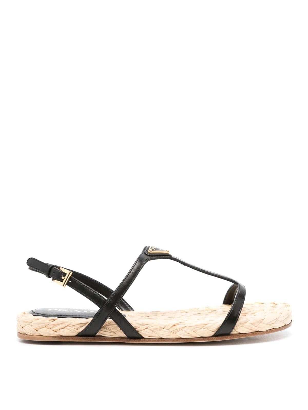 PRADA: sandals - Enamel Triangle-Logo Flat Sandals