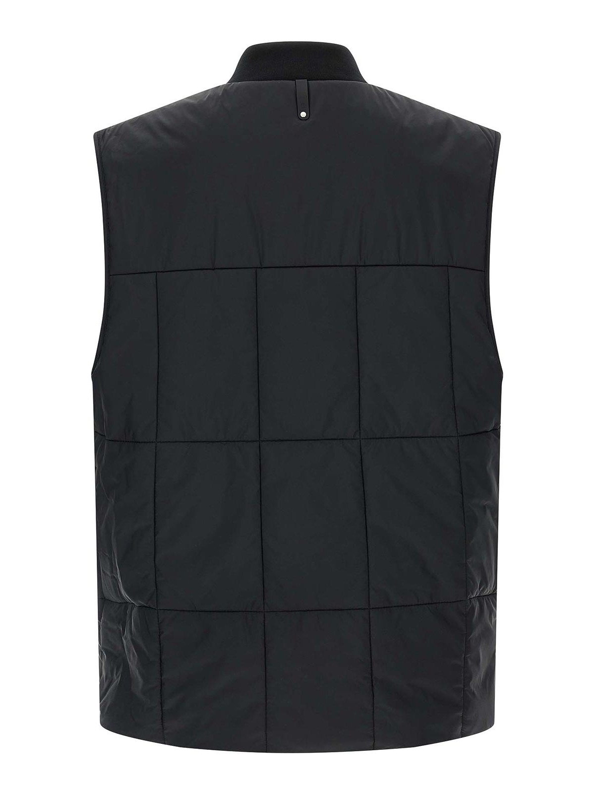 eren' vest in ultralight quilted nylon with primaloftsilver insulation and water-repellent finish, tone-on-tone silicone logo patch and front zip closure, tone-on-tone stretch knit high neck, pockets, asymMetricas l hem.