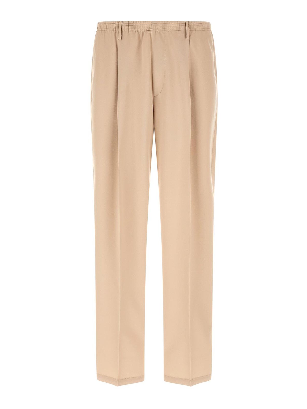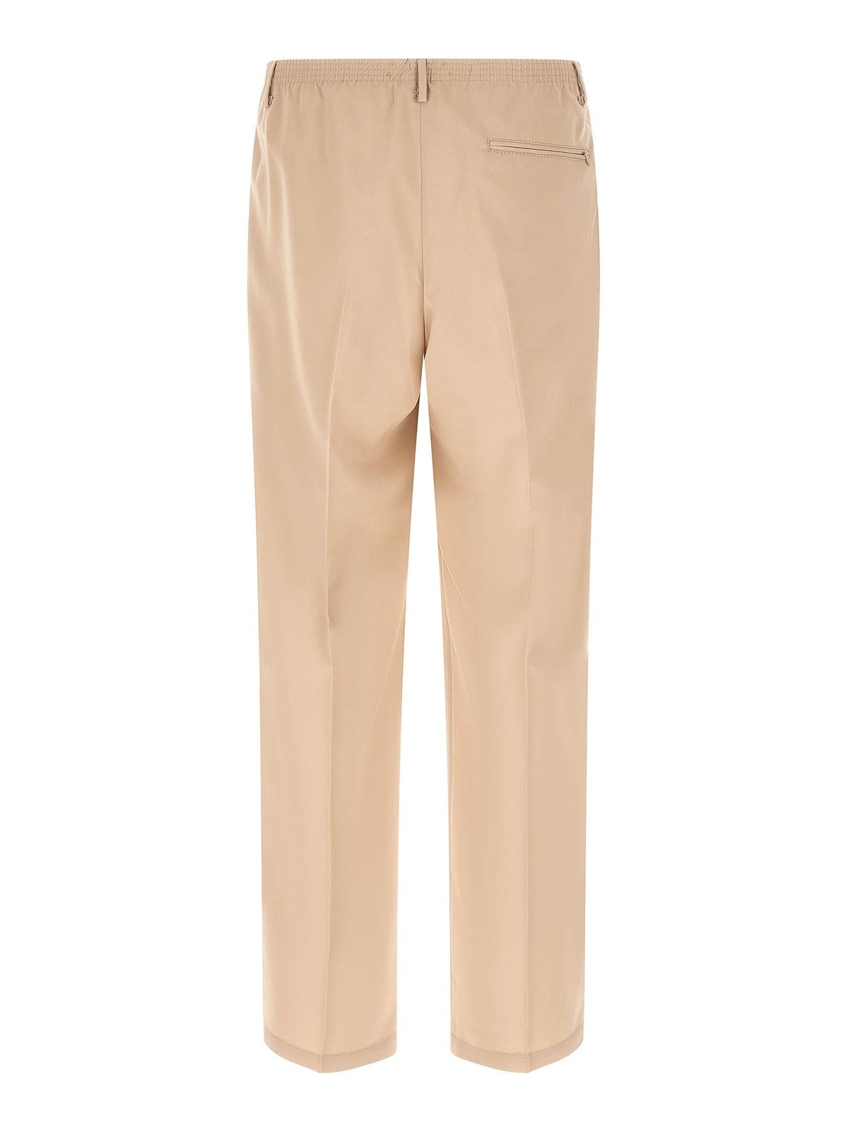 in viscose blend, elastic waistband, belt loops, slanted pockets and back pocket with hidden zip, straight leg, pleats, stretched pleat.