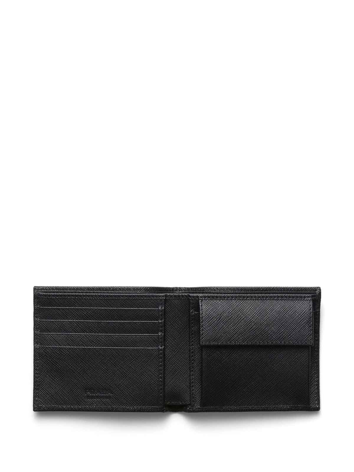 black triangle logo bi, fold design rectangle shape card slots flap pocket embossed logo saffiano