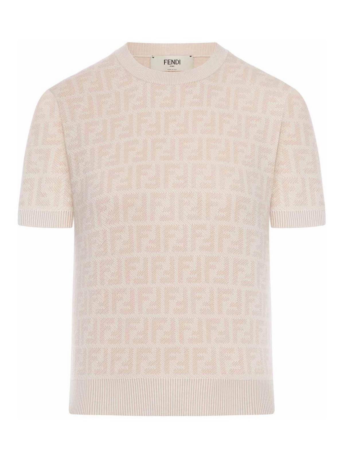 crew neck, short sleeves, fitted fit, wool and silk yarn, iconic all-over jacquard ff motif, finished with ribbed edges, color: pink