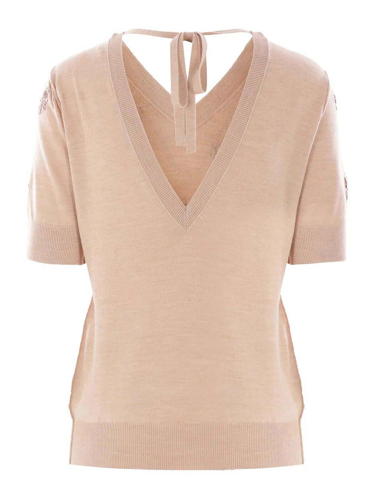 FENDI: crew necks - Floral Motif Embroidered Wool Cropped Jumper