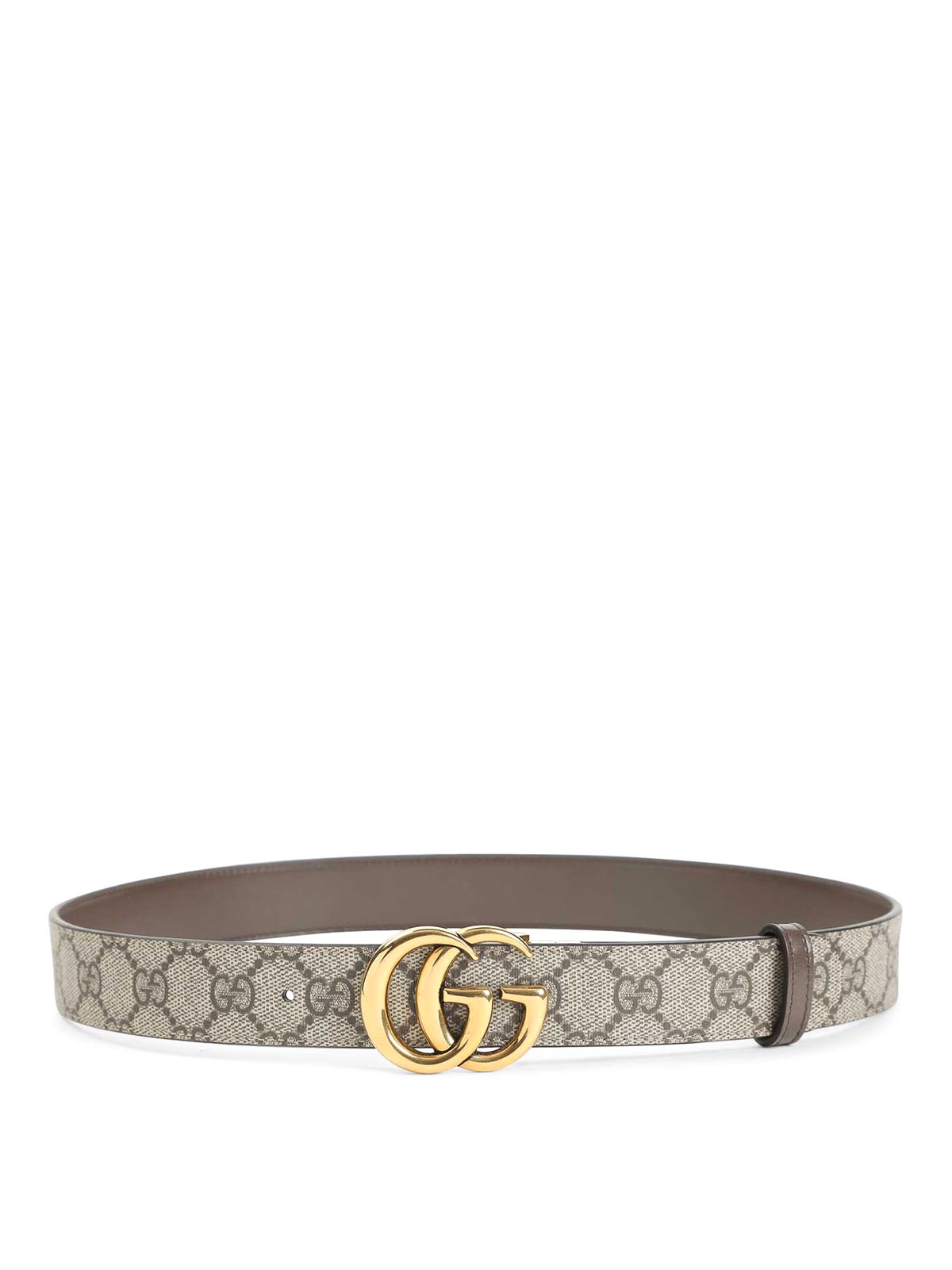 Gucci gg supreme 30 ebony textile belt. reversible design, one side crafted from beige and ebony gg supreme canvas, the other side crafted from ebony leather. belt loop, gg golden-toned buckle, adjustable fit.