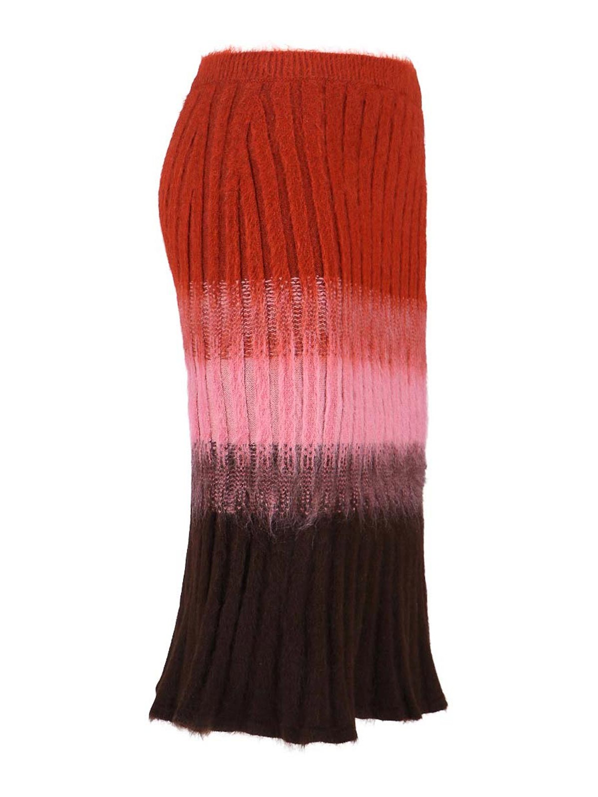Fendi mohair blend skirt, multicolour, degraded ribbed workmanship, elasticated mid-waist, removable lining detail, contrasting logo embroidery on the back, straight hem.