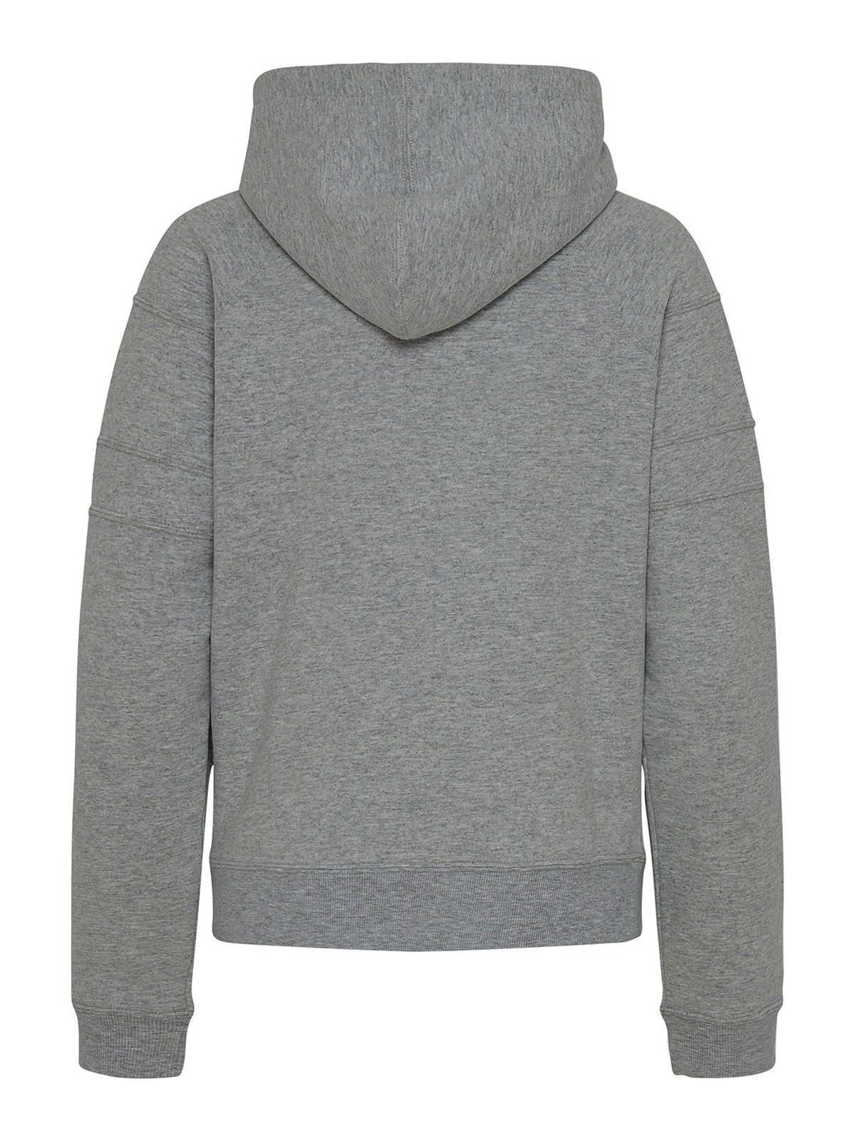 Hood with drawstring embroidered logo on the front front pouch pocket ribbed cuffs and hem