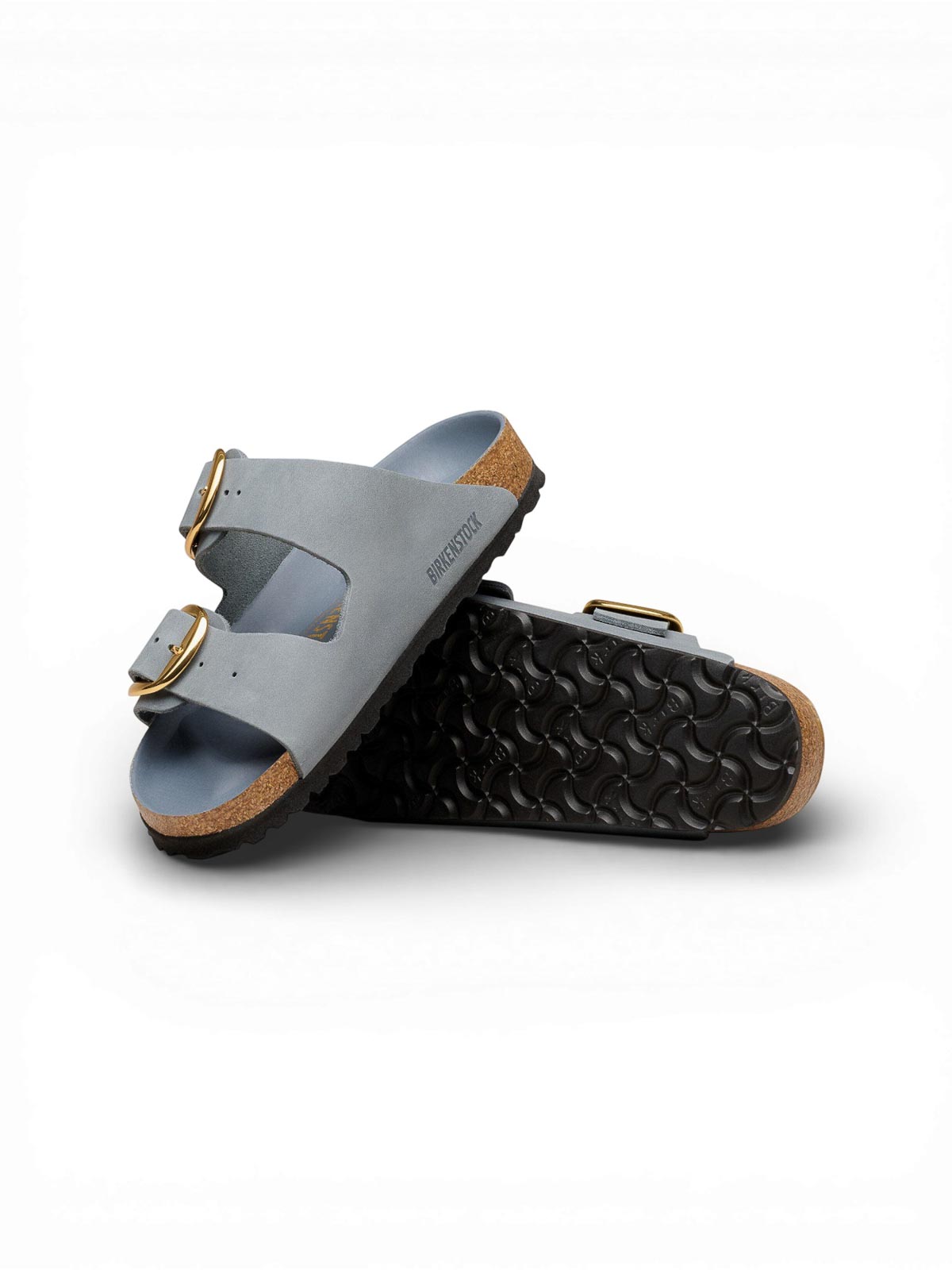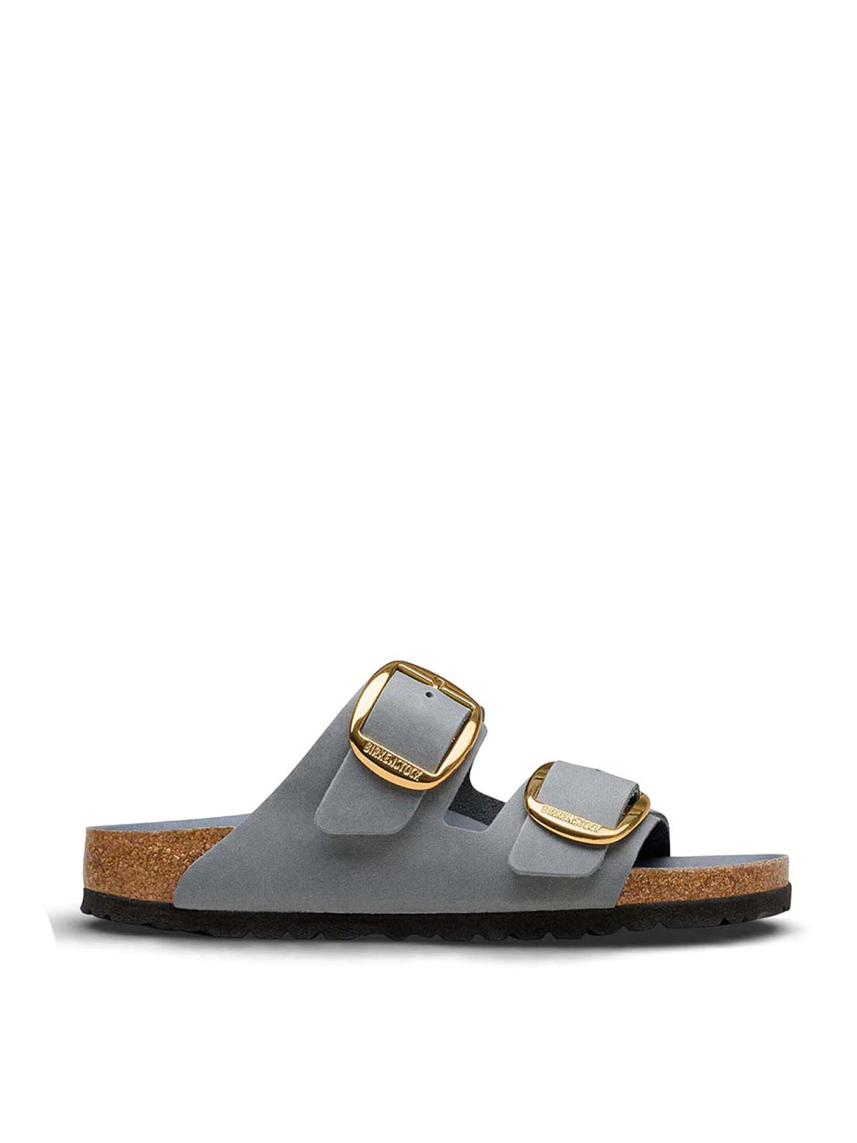 Birkenstock, arizona big buckle, oiled leather, grey, the arizona model, a timeless classic that has won over for decades with its essential design. in this big buckle version, the two-strap sandal is embellished with a large, elegant and distinctive metal pin buckle, which enhances the sober aesthetics of the model. the anatomical cork and latex footbed in the semi-exquisit variant, covered in soft smooth leather in coordinated colour, offering a feeling of superior comfort. the upper, made of particularly thick and oiled nubuck leather, worked with open stitching. the oily and waxed finish creates unique color effects and a natural patina that makes each pair distinctive., anatomical cork and latex footbed, semi-exquisit version, oiled nubuck leather upper, smooth leather insole, EVA sole, two straps with individually adjustable metal pin buckles, color coordinated footbed, made in Germany.