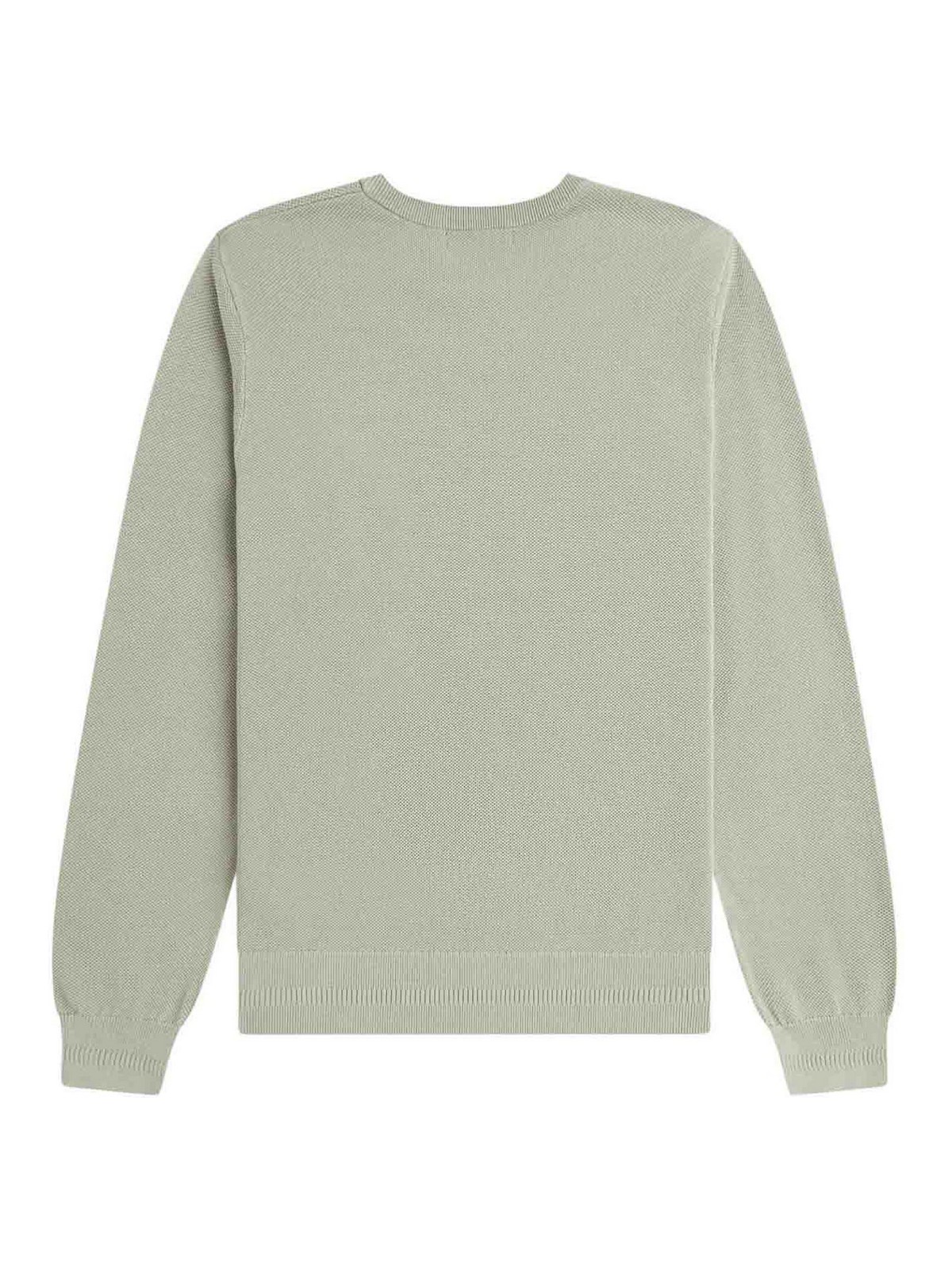Fred perry seagrass piqu sweater, crew-neck sweater made of pure cotton with piqu stitch, the same high-performance fabric used for the brand's iconic polo shirts. the compact and breathable structure ensures comfort and definition, maintaining a clean and sporty aesthetic. the essential design is completed by the classic crew neck and the mixed ribbed details on the cuffs and hem, which guarantee a stable and comfortable fit. the laurel wreath embroidered on the chest signs the garment with the unmistakable Fred Perry identity., piqué stitch cotton crew neck cuffs and hem with mixed ribbed detail laurel wreath embroidered on the chest regular fit, fabric composition: 100% cotton, washing instructions machine wash