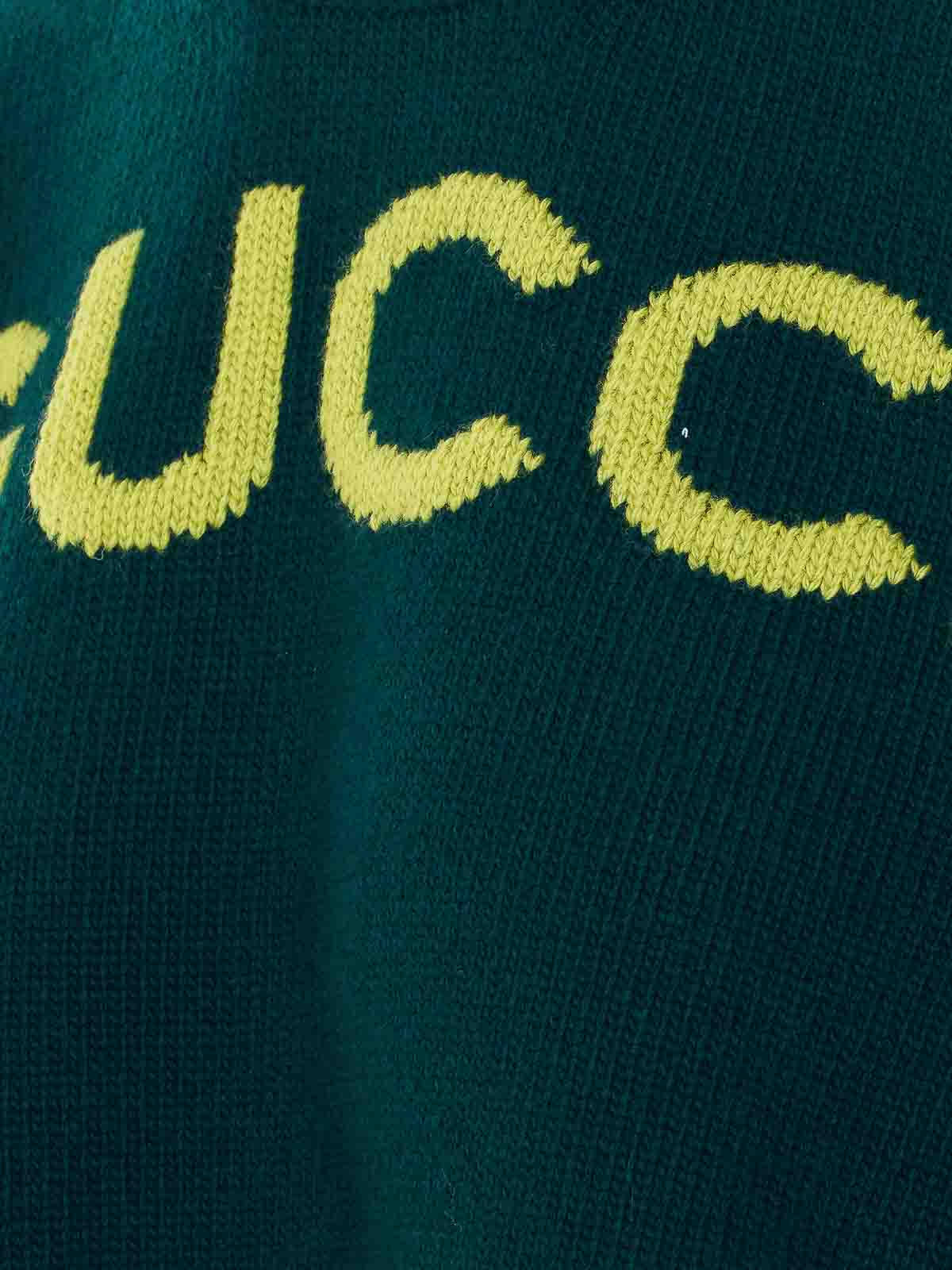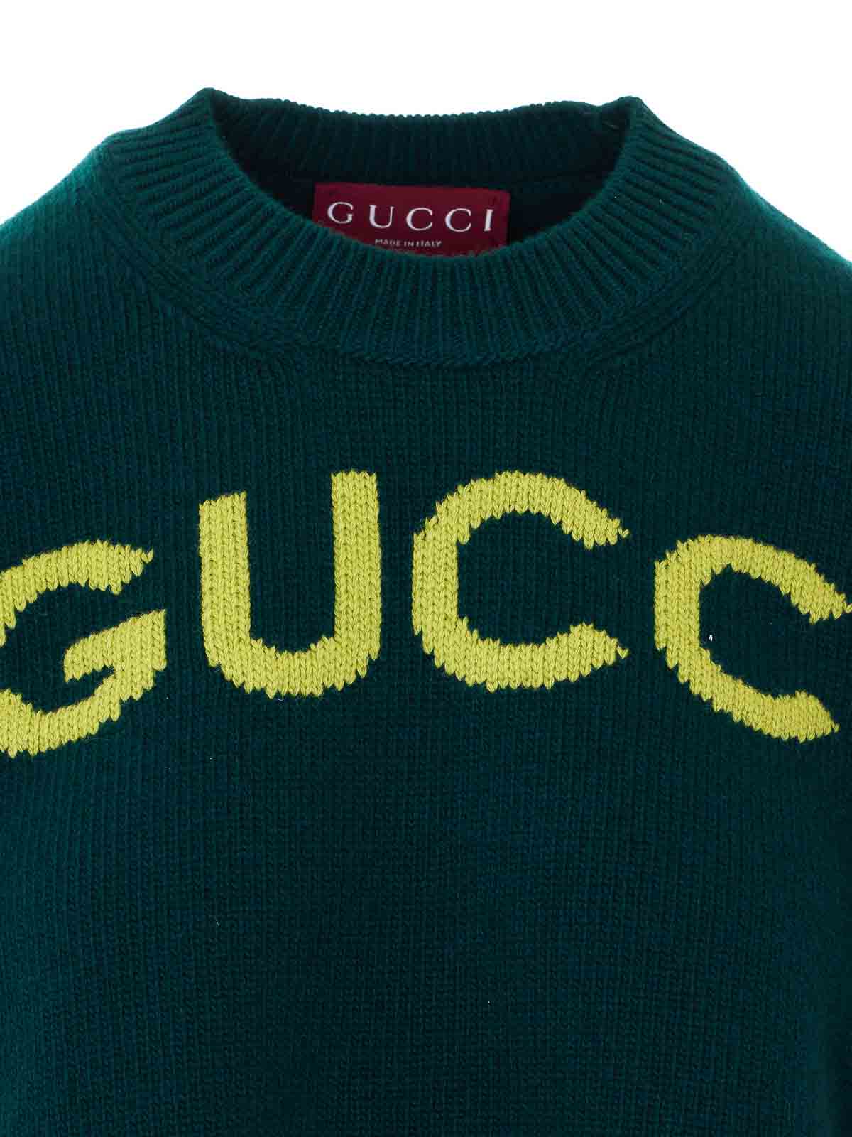 Gucci green sweater, crewneck, embroidered logo on the front, short sleeves