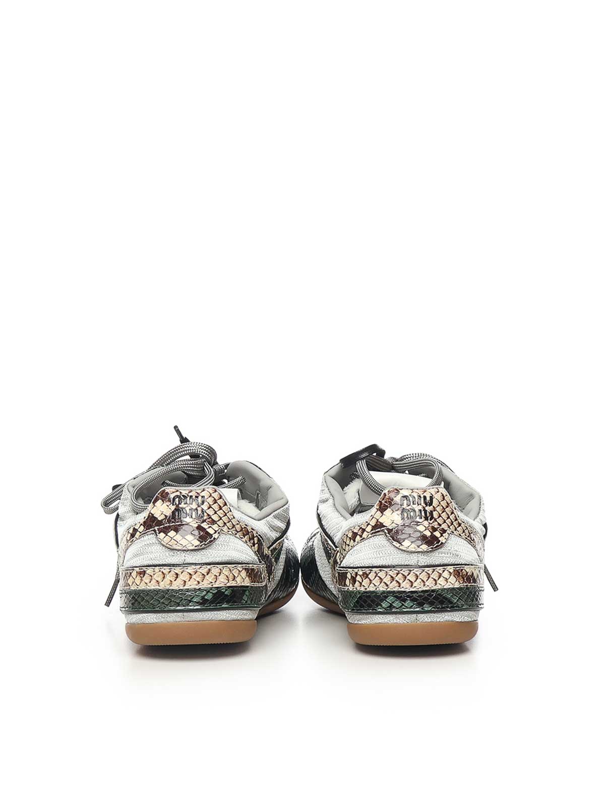 upper with leather inserts, front lace-up closure, rubber sole, logo details, made in italy, designer color: cloud, fir