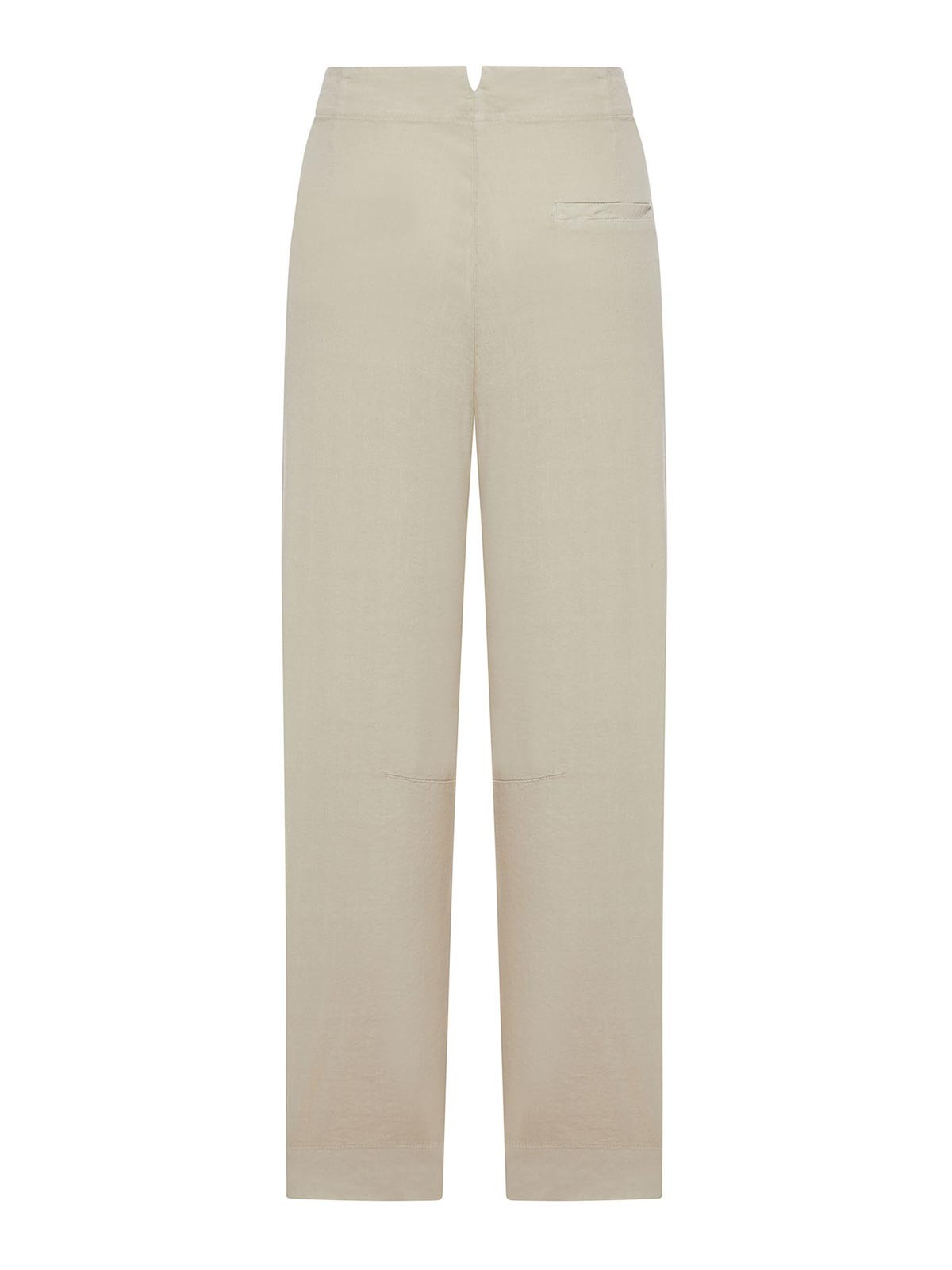 high-waisted with a double-button front closure, straight, wide leg, inset side pockets, welt pocket on the back, subtle center pleat on the front, straight hem, regular fit, color: sand