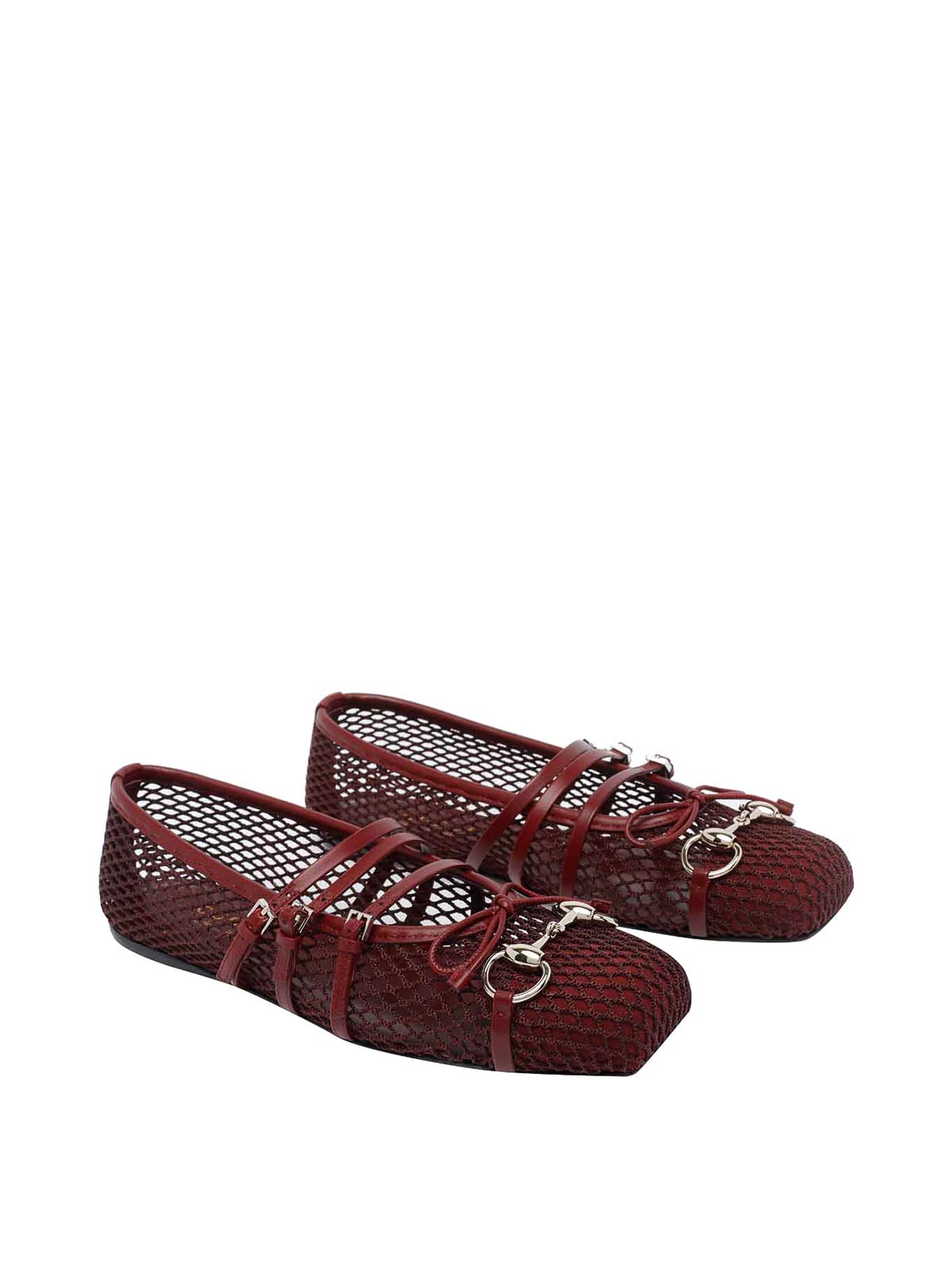 Gucci bordeaux gucci horsebit flats, square toe, net model, lateral buckles