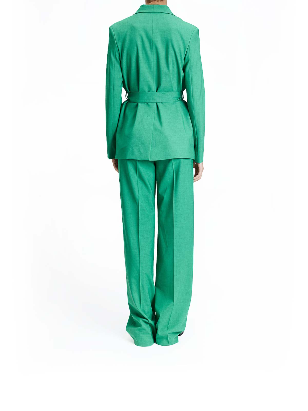 Stretched wool belted jacket in green. Tailored wool jacket by Paul Smith, featuring a matching belt at the waist, two front flap pockets, and a lapel collar. High-twist wool for wrinkle resistance, lapel collar, two front flap pockets, a matching belt at the waist, and a button closure. Color: Green. 97% wool, 3% elastane. Made in Italy.