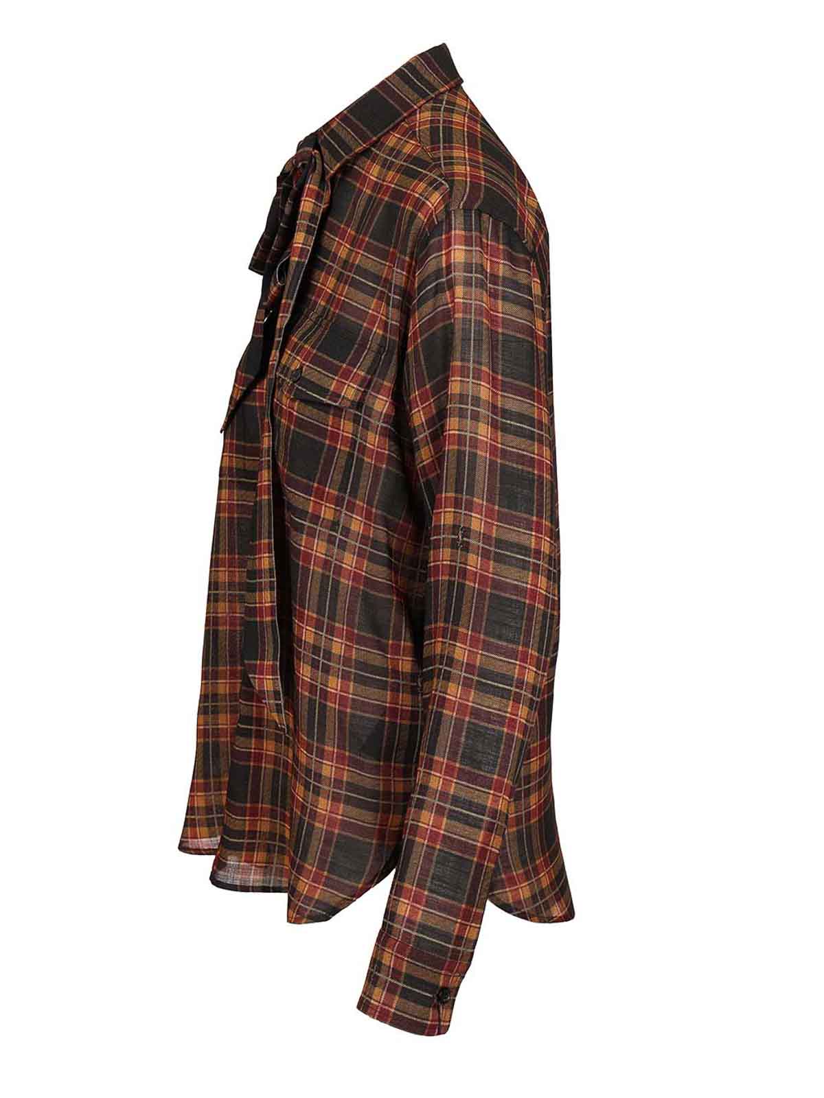 Lavallire cassandre shirt in tartan with pointed collar bow and chest pockets