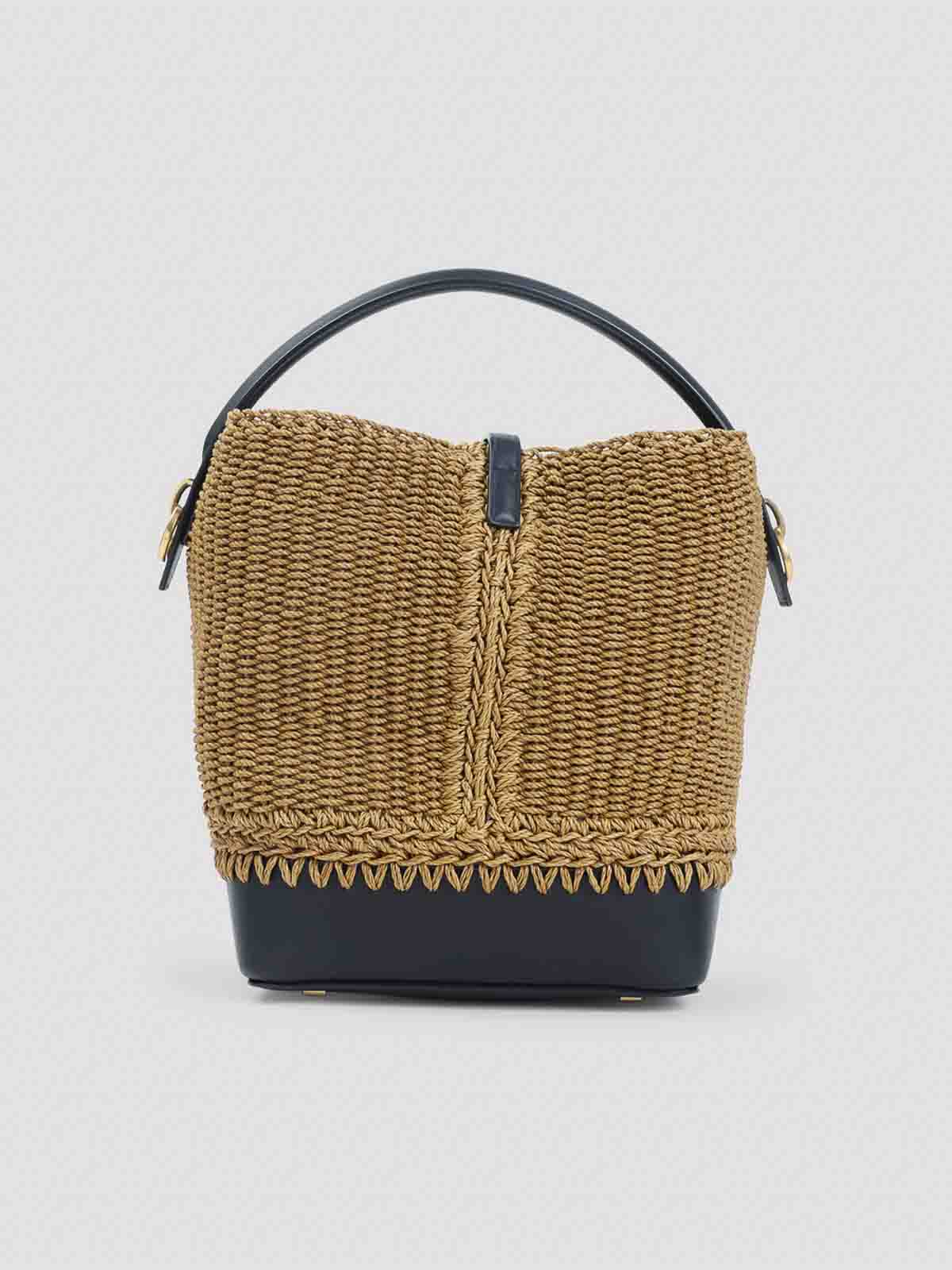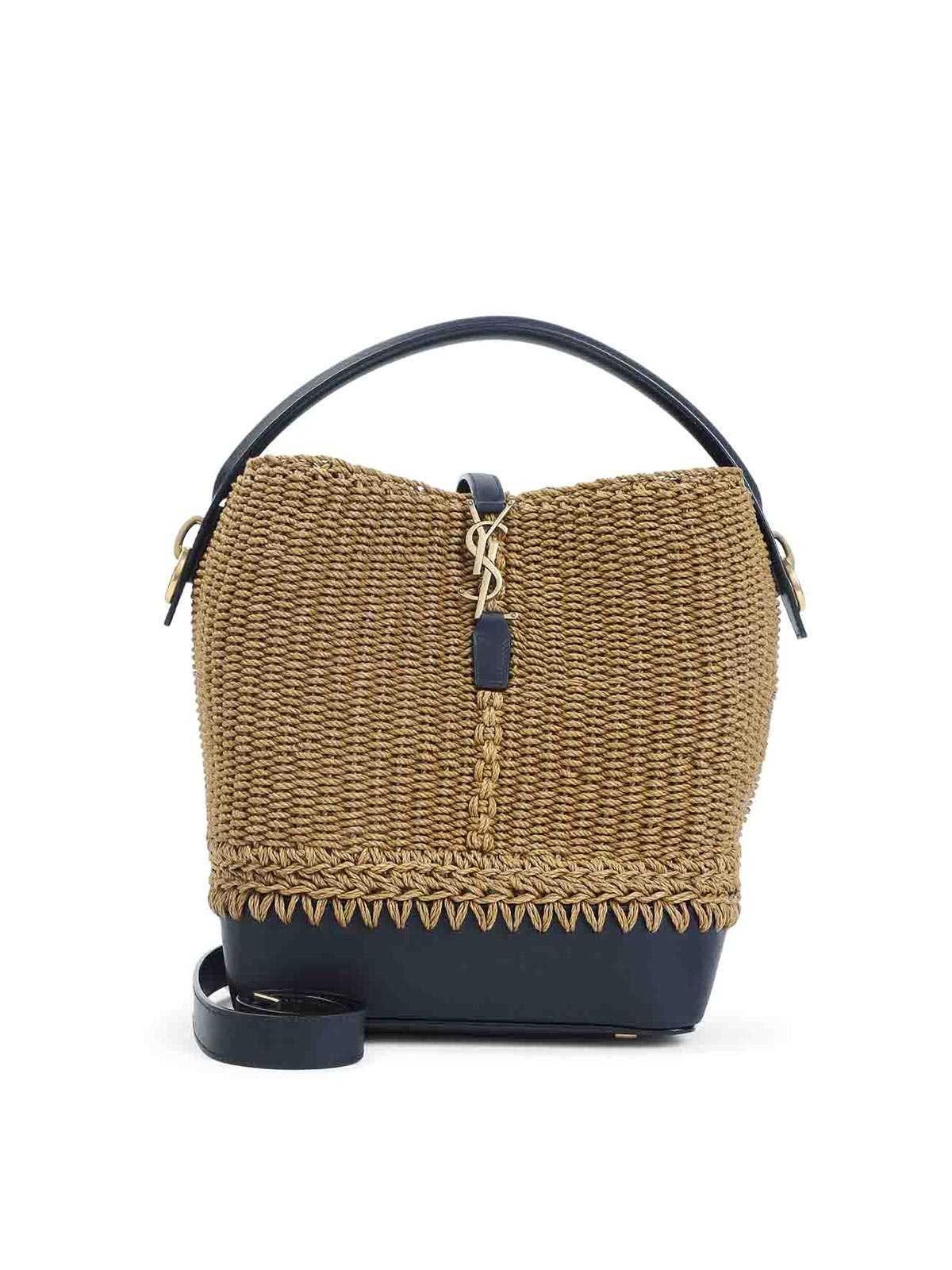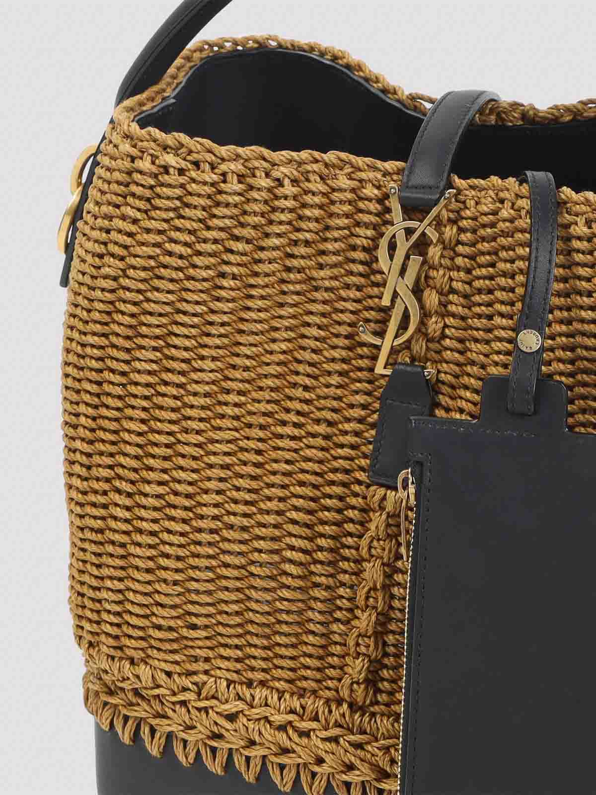 Saint laurent le 37 black raffia shoulder bag. beige raffia and black leather, golden-toned hardware, front cassandre logo fastening, top handle, attachable and adjustable shoulder strap, inner detachable zipped pouch.